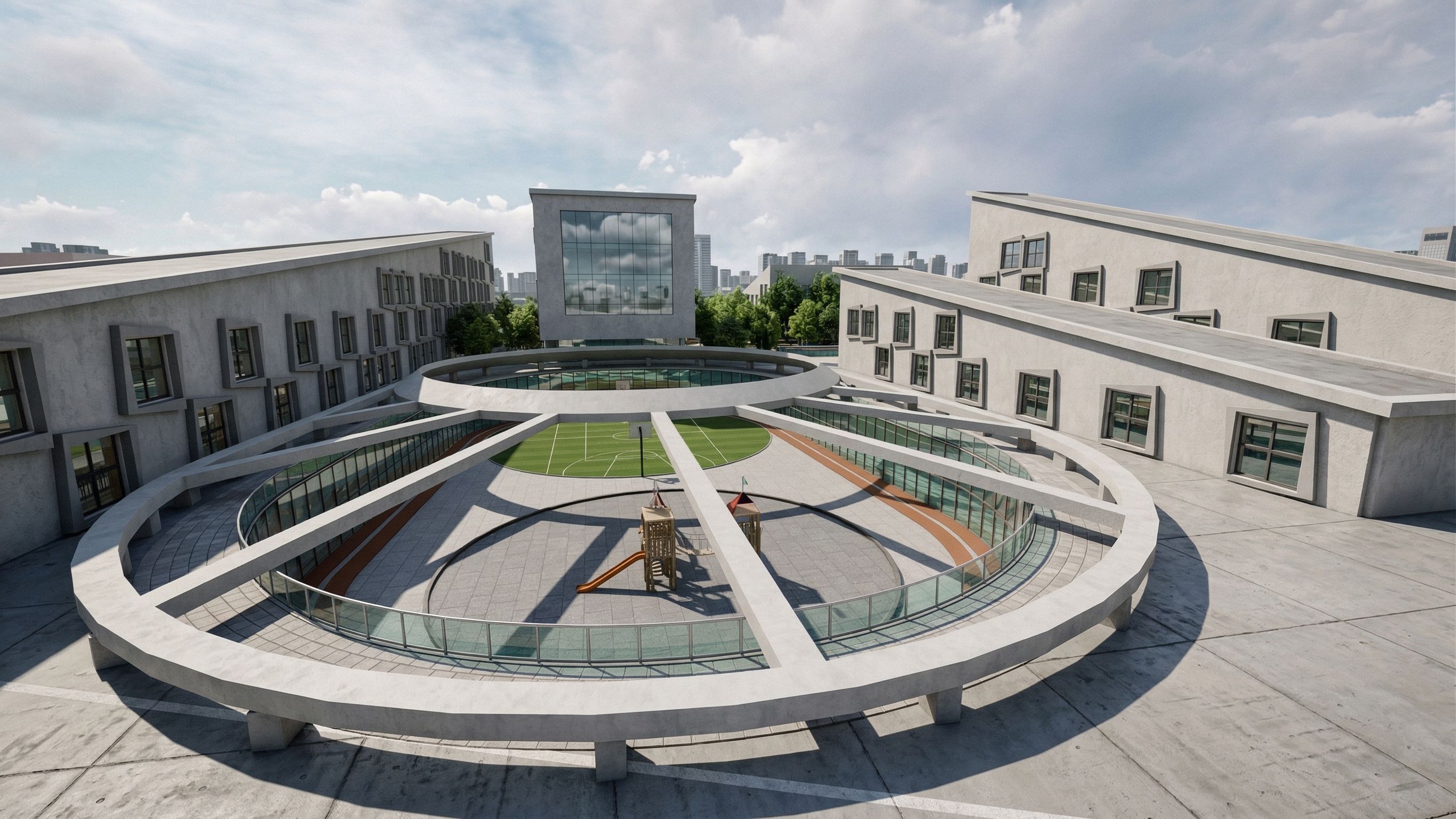 this is the roof of a high school don't add anything on the roof just enhance the material and make it clear and the scene look super realistic , keep exact camera angle