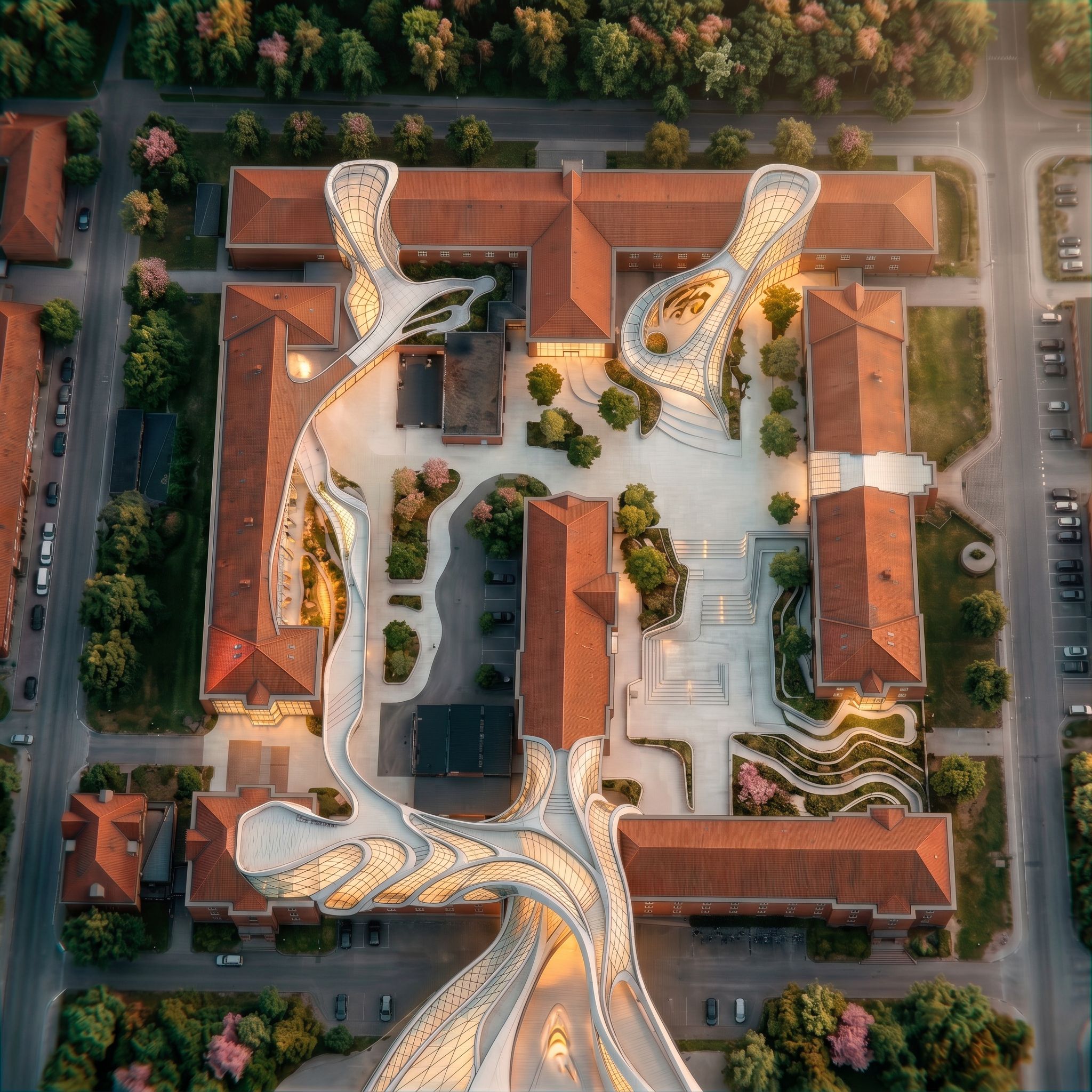 Prompttransforms the main image into a 2d top view, with the photorealistic style of the reference image. Delete all text from image., keep exact camera angle