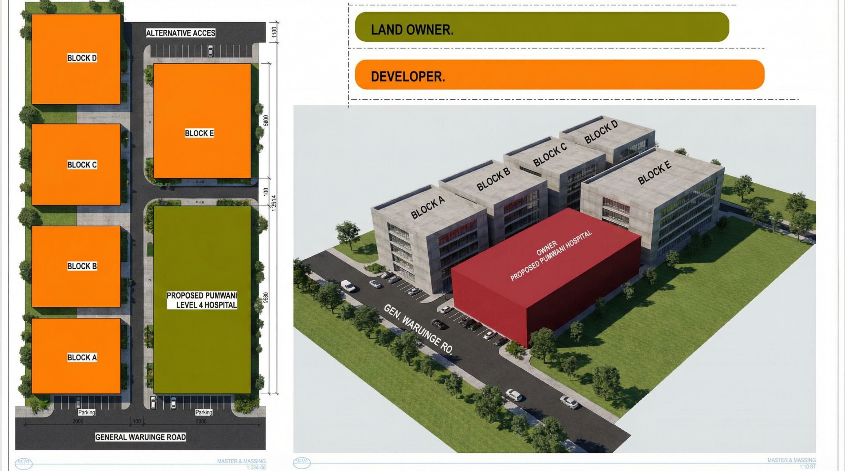 architectural floor plan, render this drawing into photorealistic rendering, LAYOUT SHOWING MASSING CONCEPT AND PLANNING. BLOCKS CLEARLY DEFINED ., keep exact camera angle, including dimension annotations, technical annotations, material indicators, high quality, professional, detailed scene