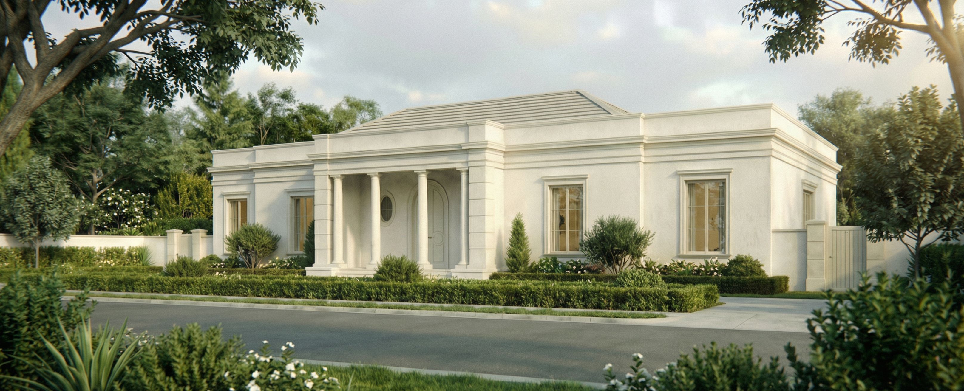 Promptthe wings that i have put a red box a round. do not chang eanything besides what is in teh wred box. these wings of the house should sit further back. either adjust the massing so it is further back by about 6ft. or use perspective to make it look like the areas in the red boxes are further back , keep exact camera angle