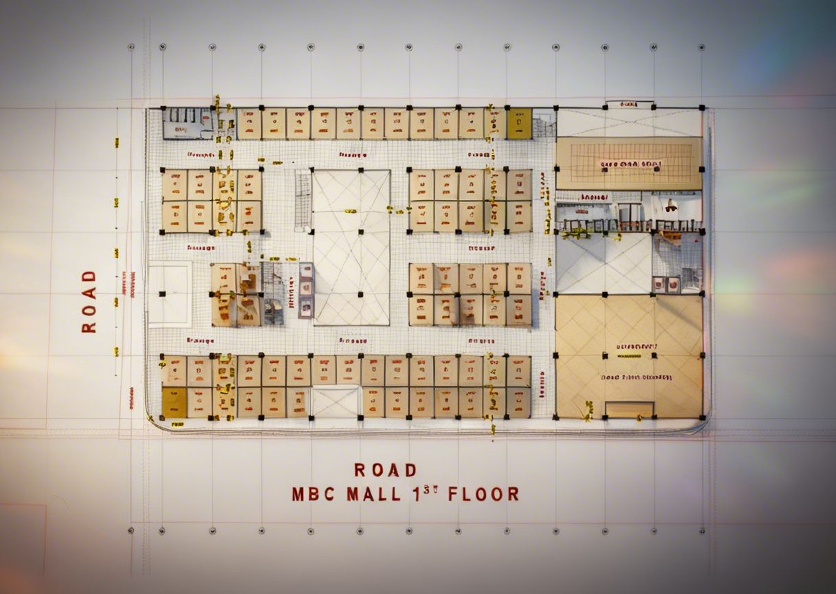 PromptLAYOUT SHOWING MALL SHOPS, SUPERMARKET A WOMEN'S MOSQUE AT THE BACK. CLEARLY DEMARCATE THE WASH ROOMS. CLEARLY SHOW ACTUAL SHOP NUMBERS AND SIZES AS INDICATED. MAKE LAYOUT REALISTIC AND TWO DIMENSIONAL. MAKE LAYOUT REALISTIC AND HIGH RESOLUTION . USE ACTUAL NUMBERING OF SHOPS AS THE ORIGINAL LAYOUT. USE PORCELAIN TILES AS THE FLOOR FINISH. MAKE IMAGE HIGH RESOLUTIONS AND CLEARLY SHOW ANNOTATIONS. MAKE REALISTIC AND REMOVE THE BACKGROUND. USE CERAMIC TILES AS FLOOR FINISH AND CLEALY INDICATE THE VOIDS. REVOVE BACKGROUND AND MAKE IMAGE REALISTIC., keep exact camera angle