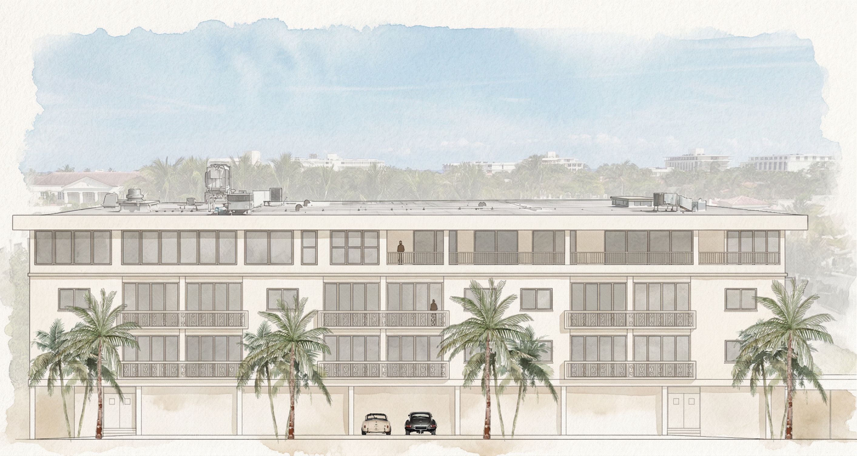 Soft watercolor architectural rendering
