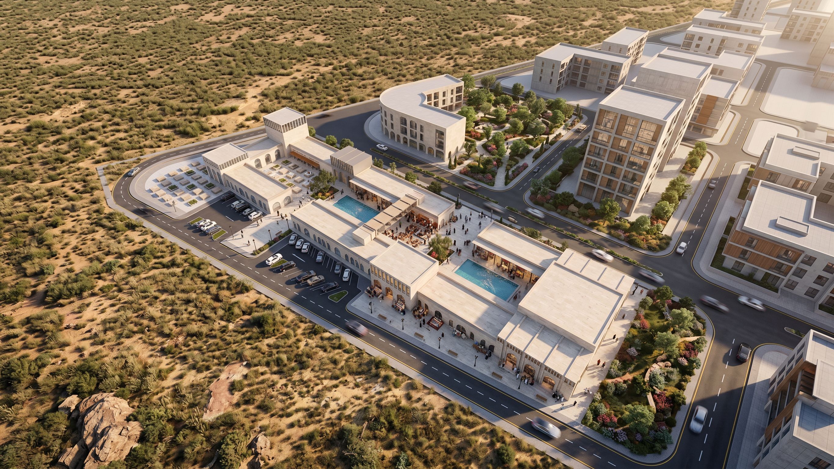 • add realistic people walking, gathering, and enjoying the outdoor courtyards