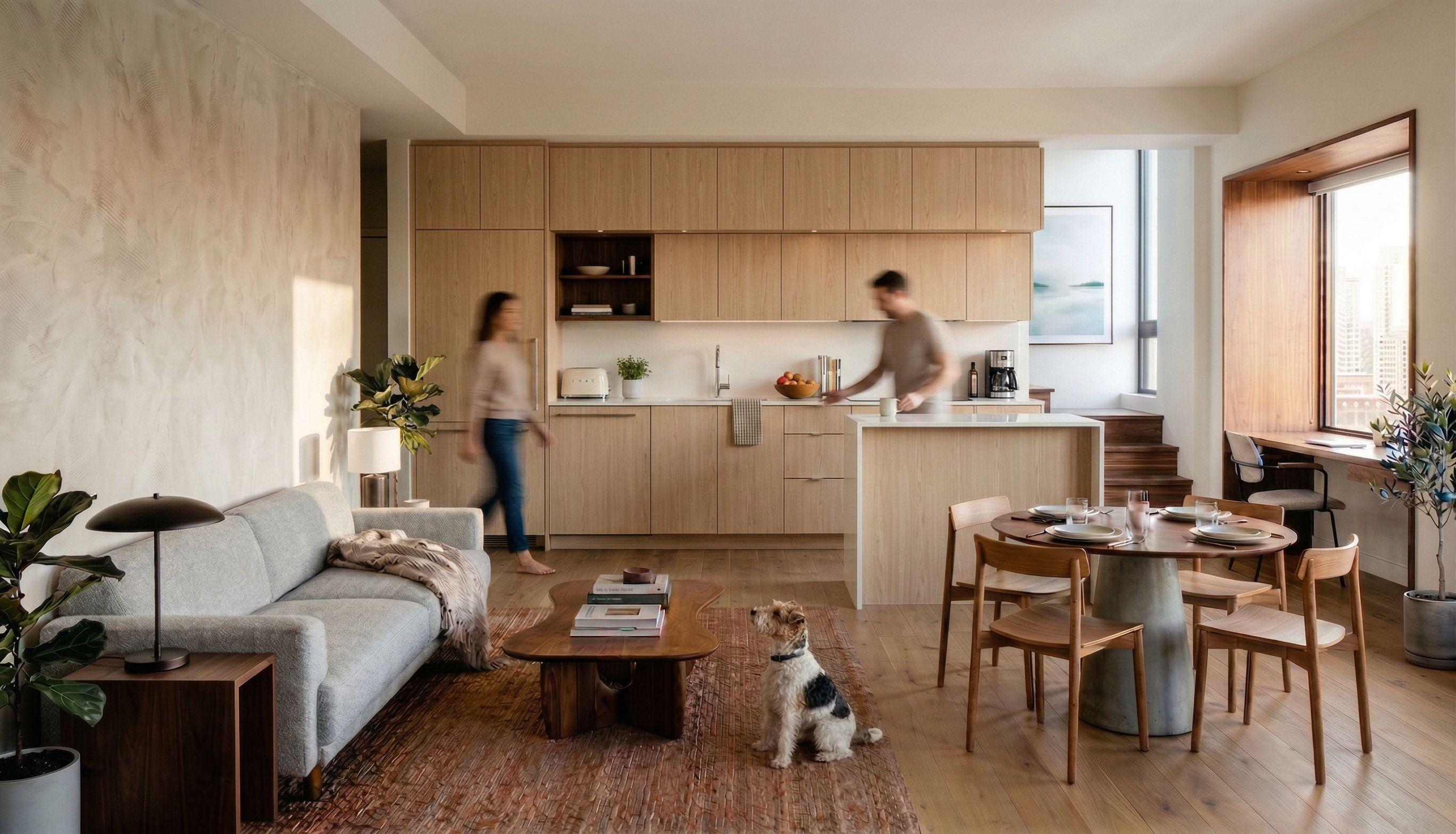 use same image with light oak cabinet finish substituted for the white finish. Keep the dark wood finishes, keep exact camera angle