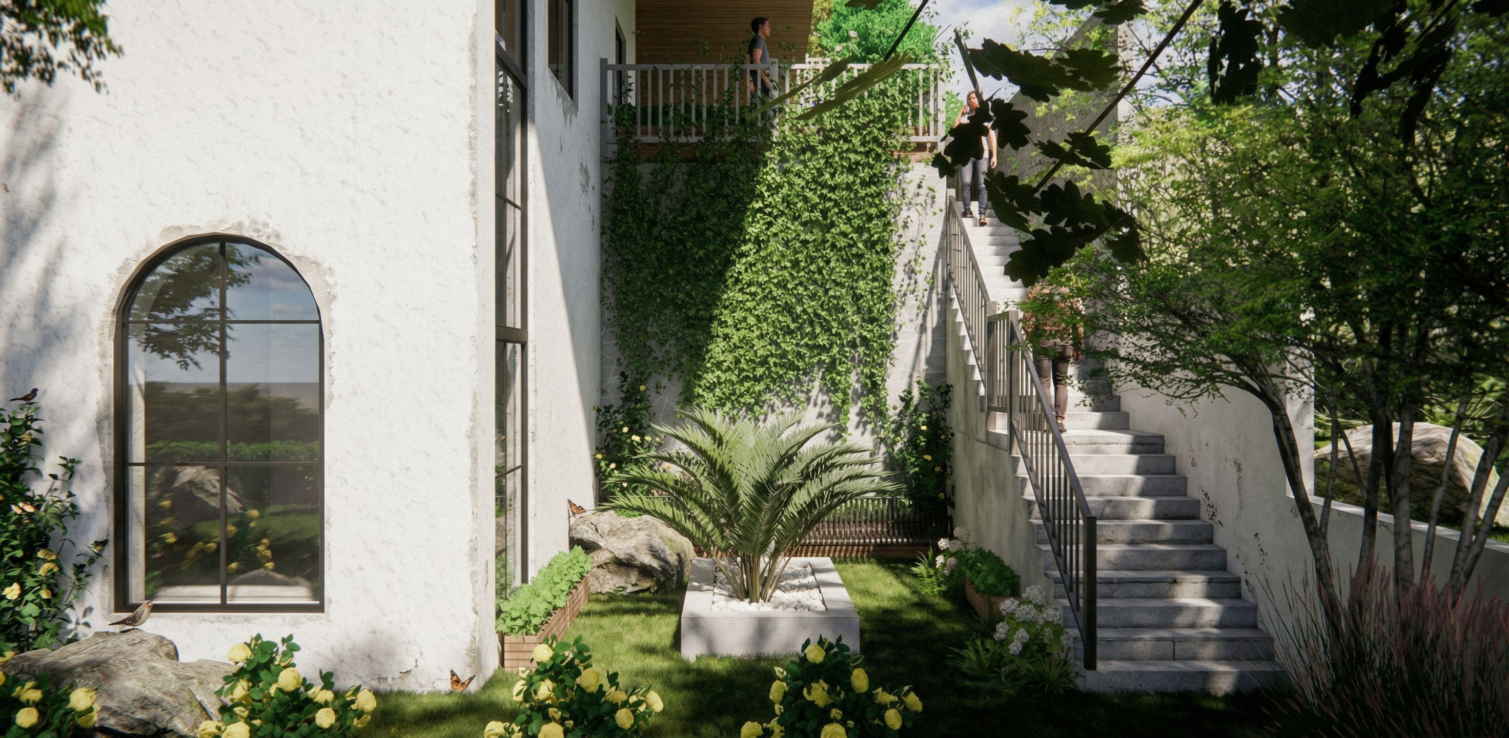 PromptTransform the provided architectural facade into a fully realistic, high-quality image that appears as a completed and fully constructed building. Ensure absolute preservation of all proportions, dimensions, geometry, and architectural elements exactly as they are, with no additions, removals, or distortions. Enhance the facade using high-precision, realistic materials already present in the design, such as exposed concrete and clear, reflective glass. Apply detailed material textures that include subtle realistic imperfections such as surface variation, joints, connections, and natural color inconsistencies. Use physically accurate lighting, including correct sunlight direction, soft global illumination, natural ambient lighting, and realistic shadows to enhance depth and realism, while maintaining accurate perspective and correct camera angles. Add trees and minimal natural elements in the areas surrounding the project site to suggest sustainability, without overpowering or dominating the building. Create a balanced natural environment with subtle window reflections, delicate atmospheric effects, and fine construction details. The final result should resemble a professional architectural photograph of a completed building, highly realistic, clean, modern, and visually convincing., keep exact camera angle