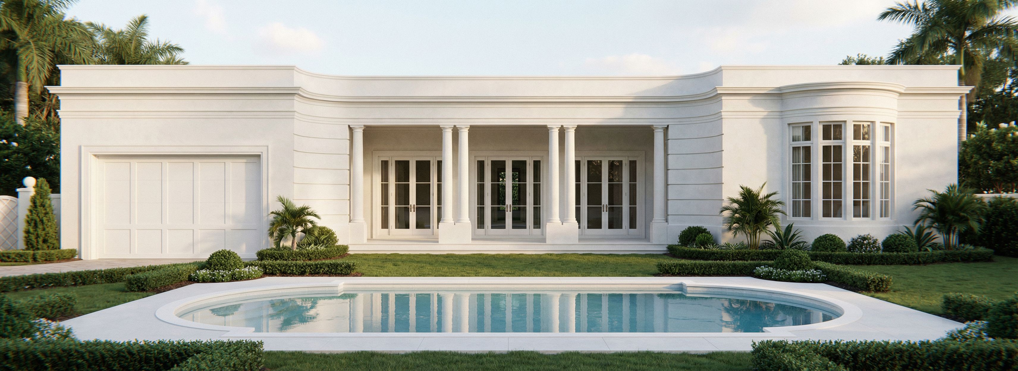Refined, crisp classical detailing with minimal contrast.