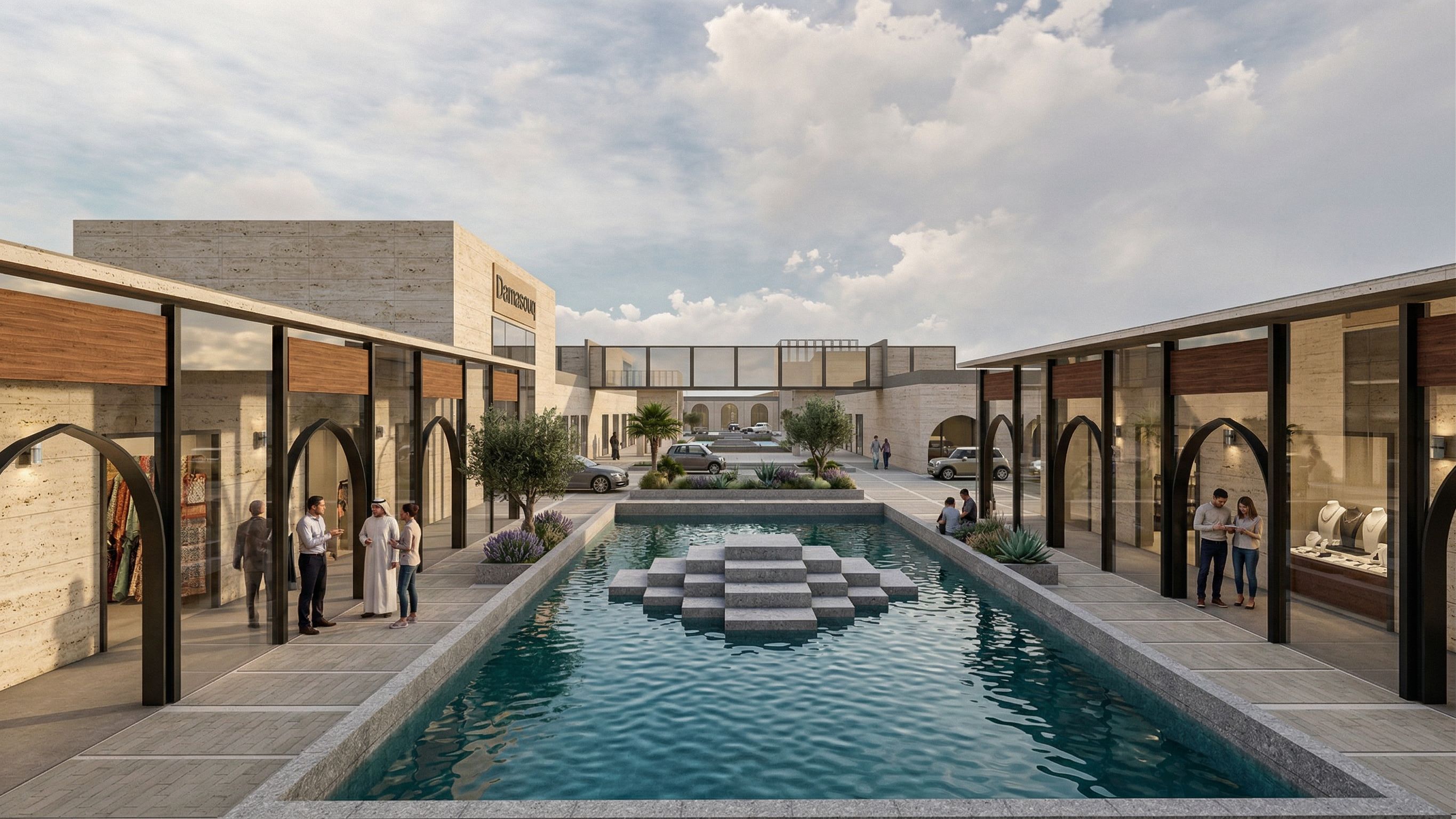 • add realistic people walking, gathering, and enjoying the outdoor courtyards