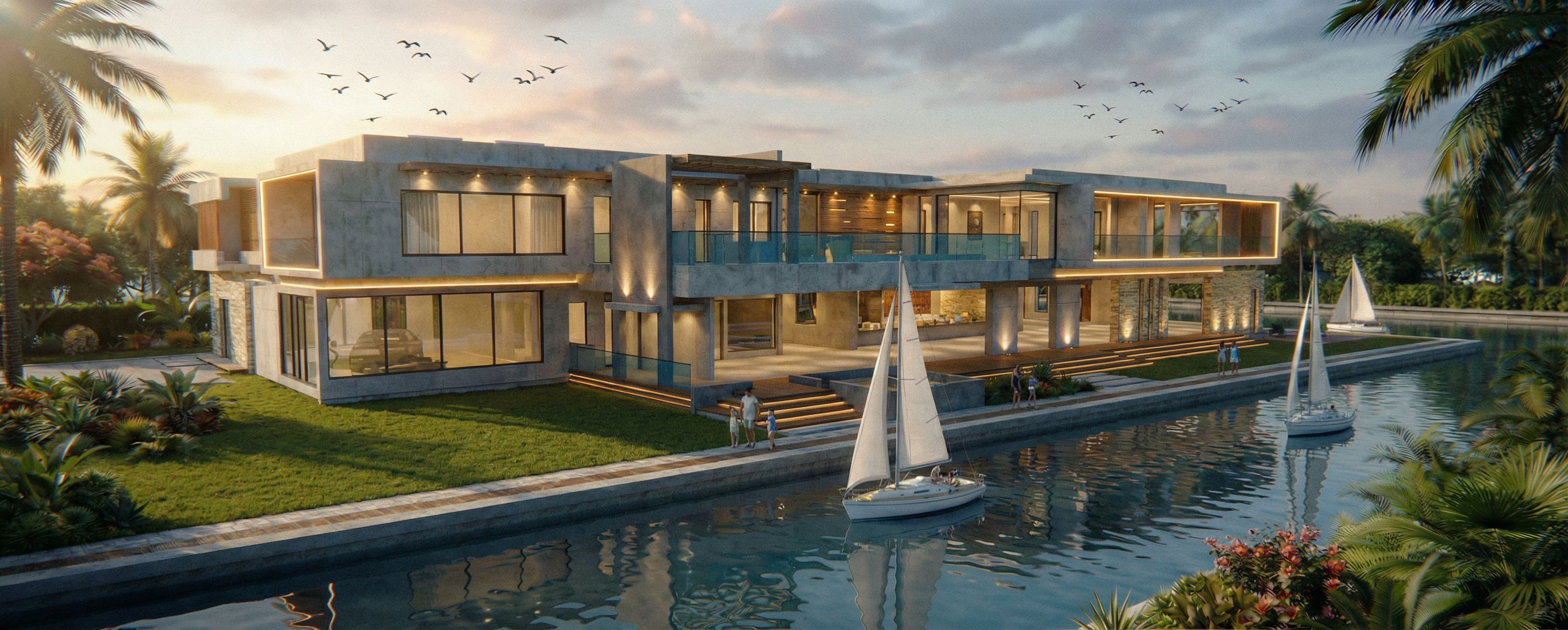 PromptREMOVE THELUXURY SUVS. SKY WITH BIRDS FLIYING. MODERN ILUMINATION IN THE EXTERIOR , keep exact camera angle