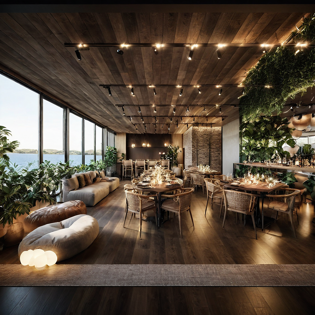 Prompta realistic contemporary ambient for a party room, with beautiful sunlight