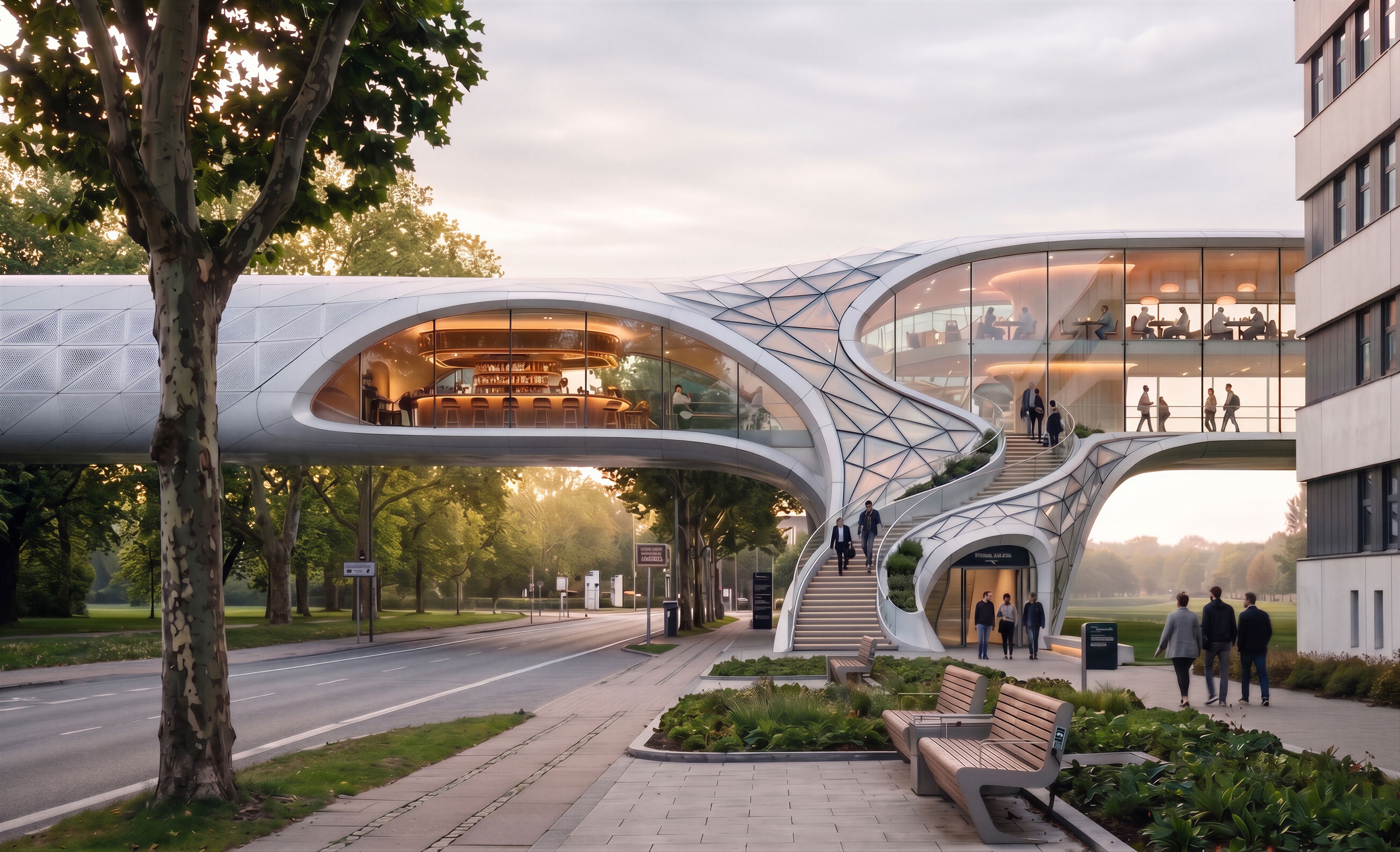 EDIT THIS IMAGE. REMOVE THE RED BRICK BUILDING BEHIND THE BRIDGE., keep exact camera angle
