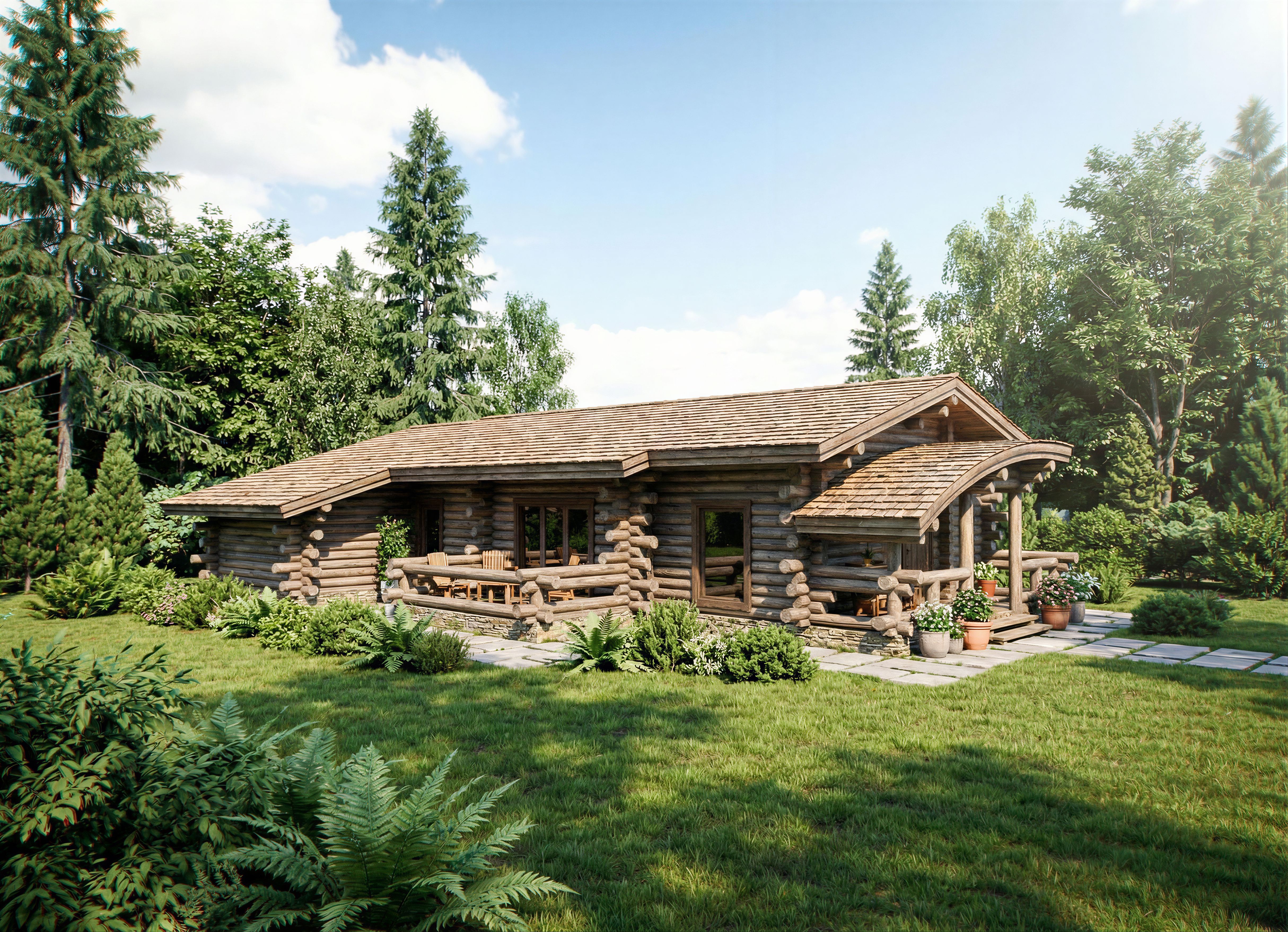 log house with shingle roof, keep exact camera angle