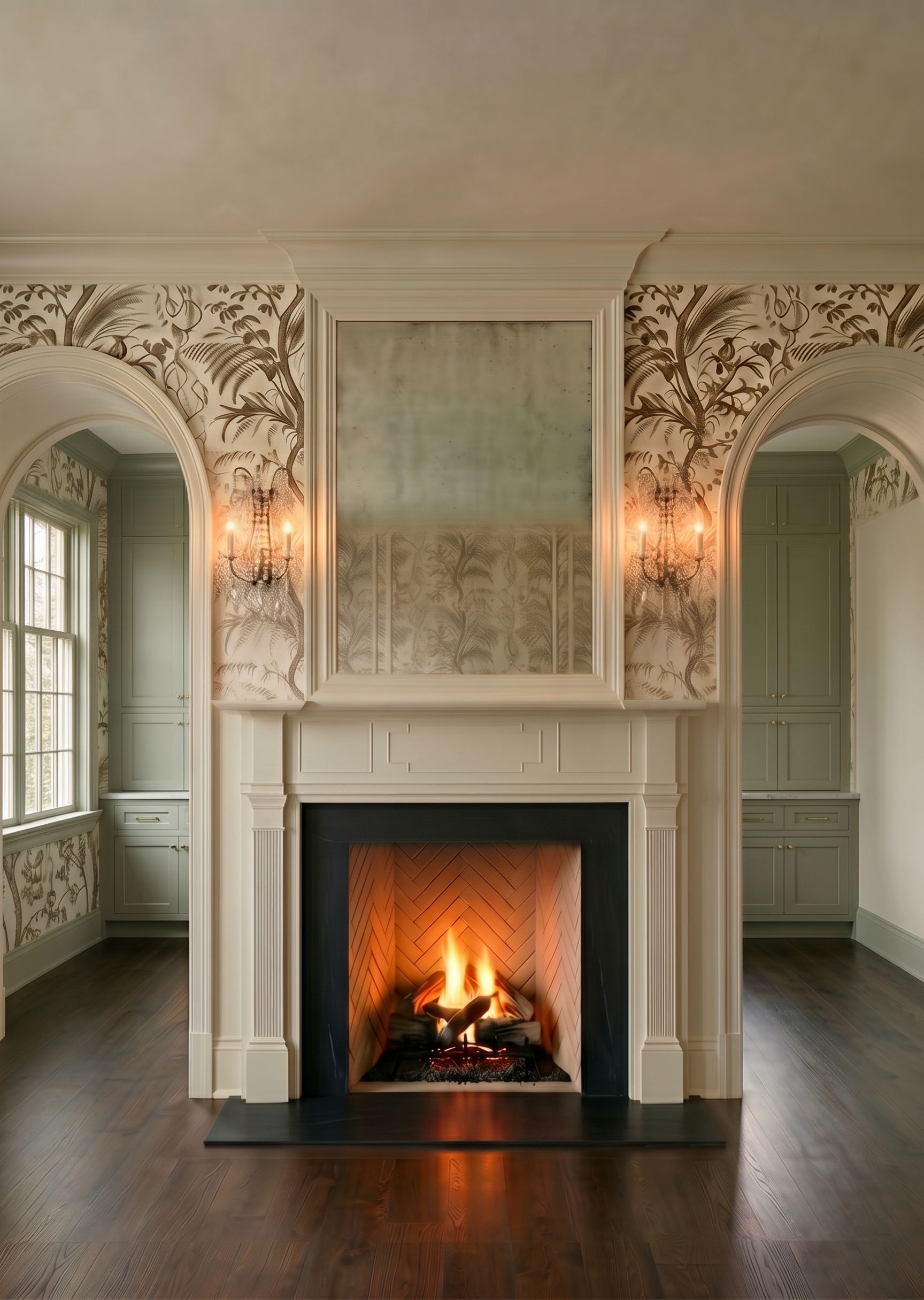 PromptKeep everything the same but there is no window visible through the arch on the right. There is also no cabinetry on the wall on the right or under the window on the left. Also, the countertops should be Vermont Danby and there should be no glass in the cabinet doors. Keep everything else the same., keep exact camera angle