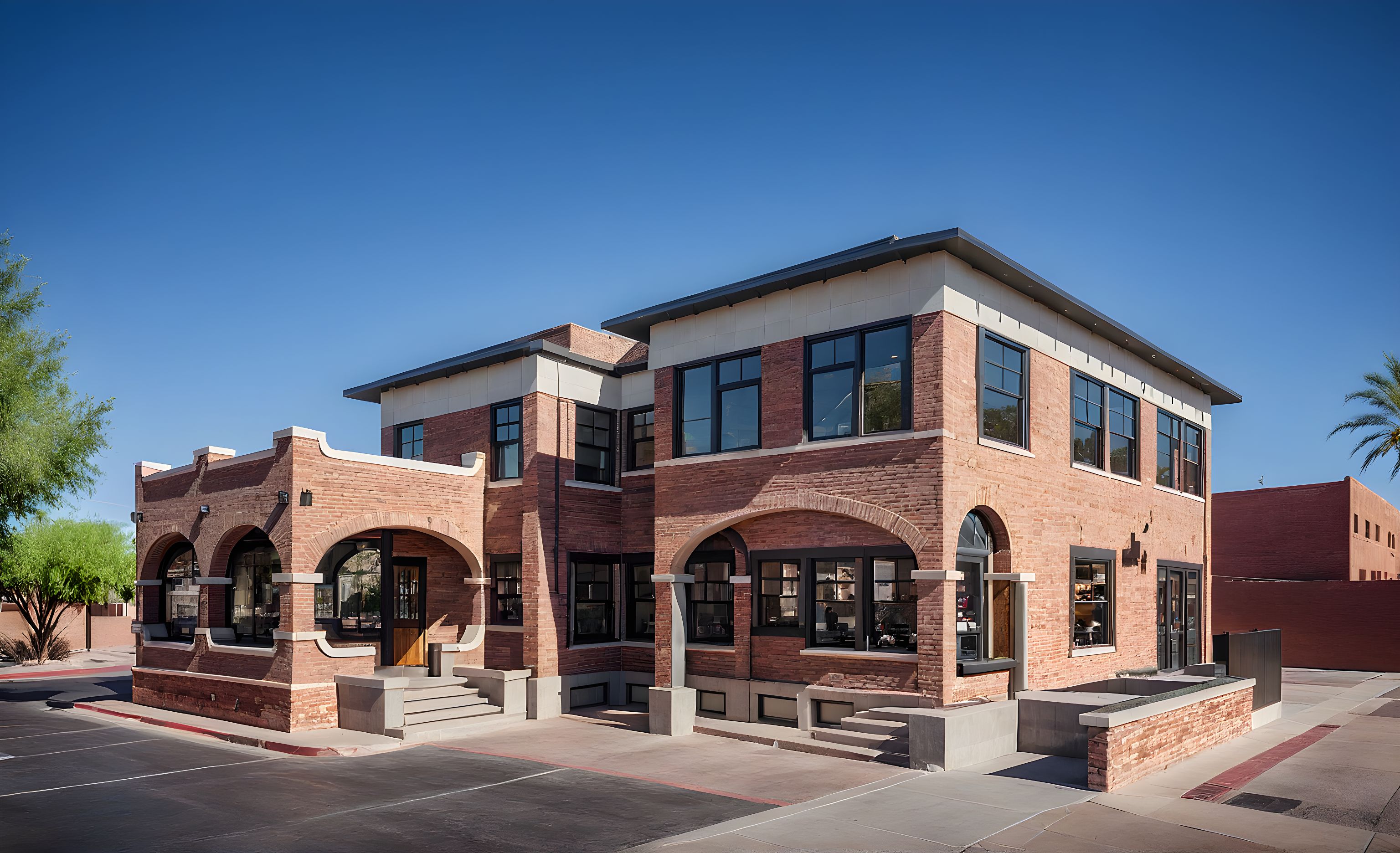 PromptModern restaurant in downtown Phoenix, Arizona, historical neighborhood, exposed brick building.