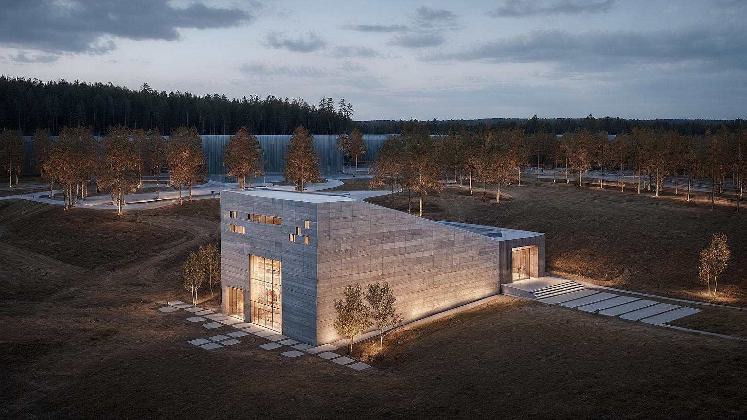 it is a museum near a forrest, add people