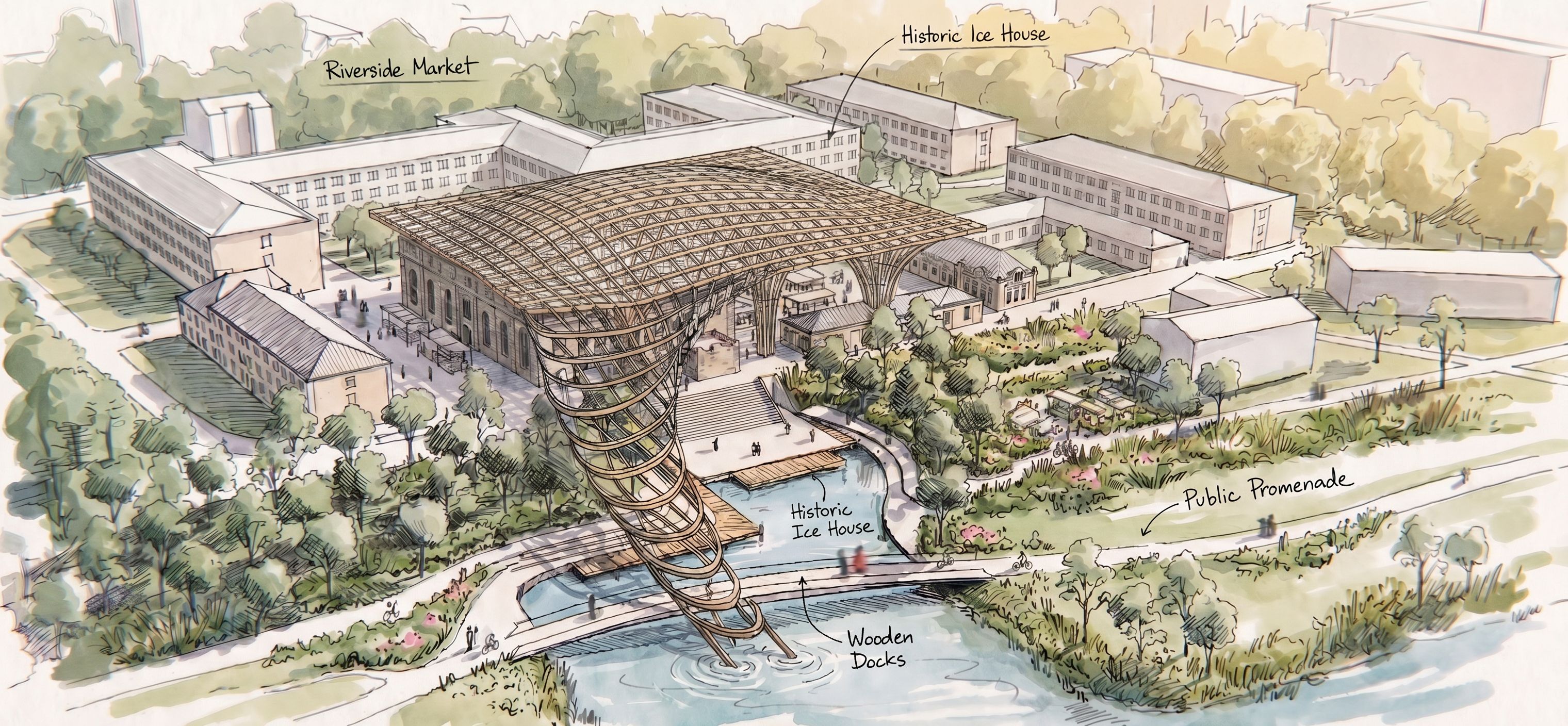 Promptso replace and do the roof as in reference 3d models of this roof and add the colums in the corners like in the model and please make the roof just on the main bulding not any longer on the right side, so it just is on the main bulding not on the park beside, keep exact camera angle