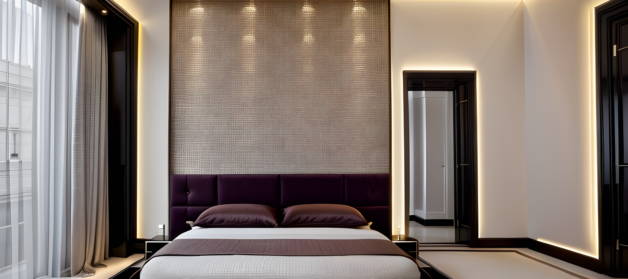 PromptRender Bedroom, Classic Modern design, headbed with accessories, wallmoulding