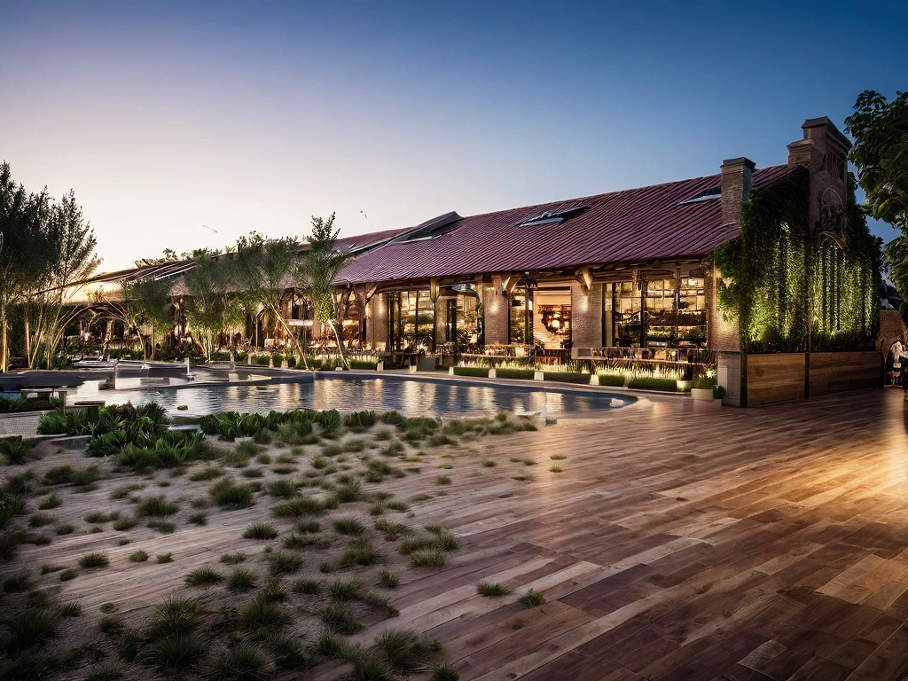 Promptfood hall, amazing garden, same construction materials, same facade, amazing terrace