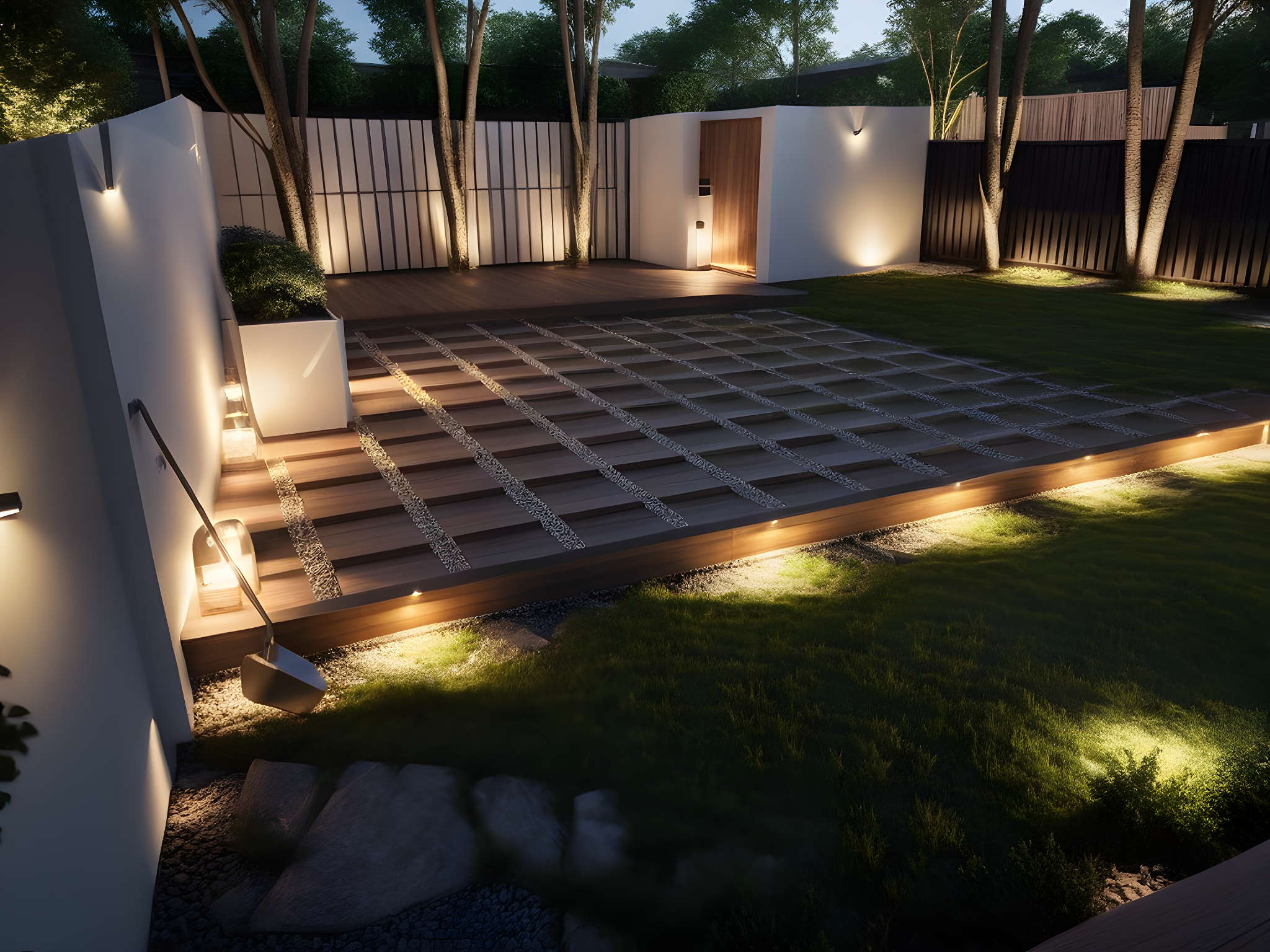 PromptI would like to this space by adding lighting, a lit staircase, an outdoor barbecue, and seating.