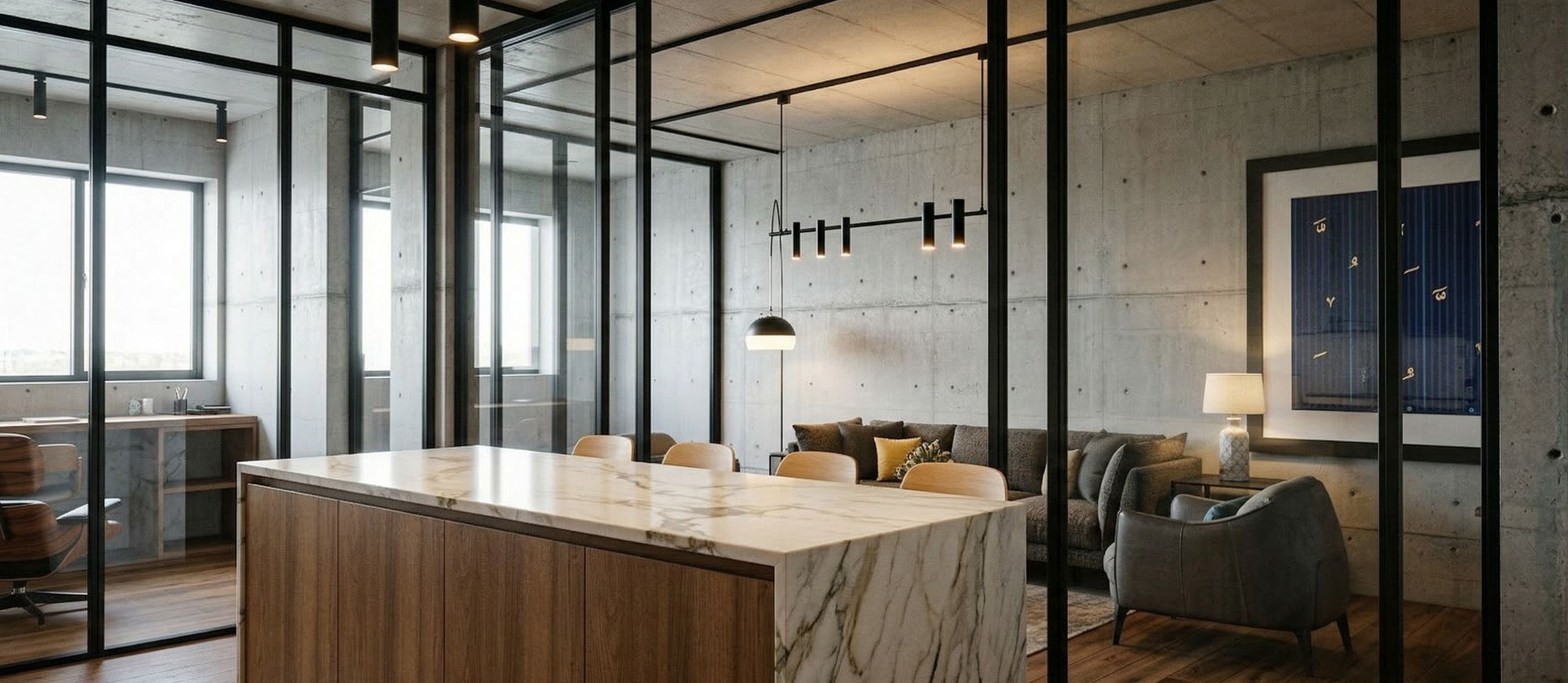 PromptAPARTAMENTO INDUSTRIAL ELEGANTE, SUELO MADERA MEDIO, MOBILIARIO ELEGANTE CARO, COCINA MADERA DE RIBLE , COLORES NATURALES, PIEDRA CALACATA, ARTISTICO, no cambies la perspectiva, no interpretes, no modifiques la volumietria, NO MODIFIQUES LA, keep exact camera angle