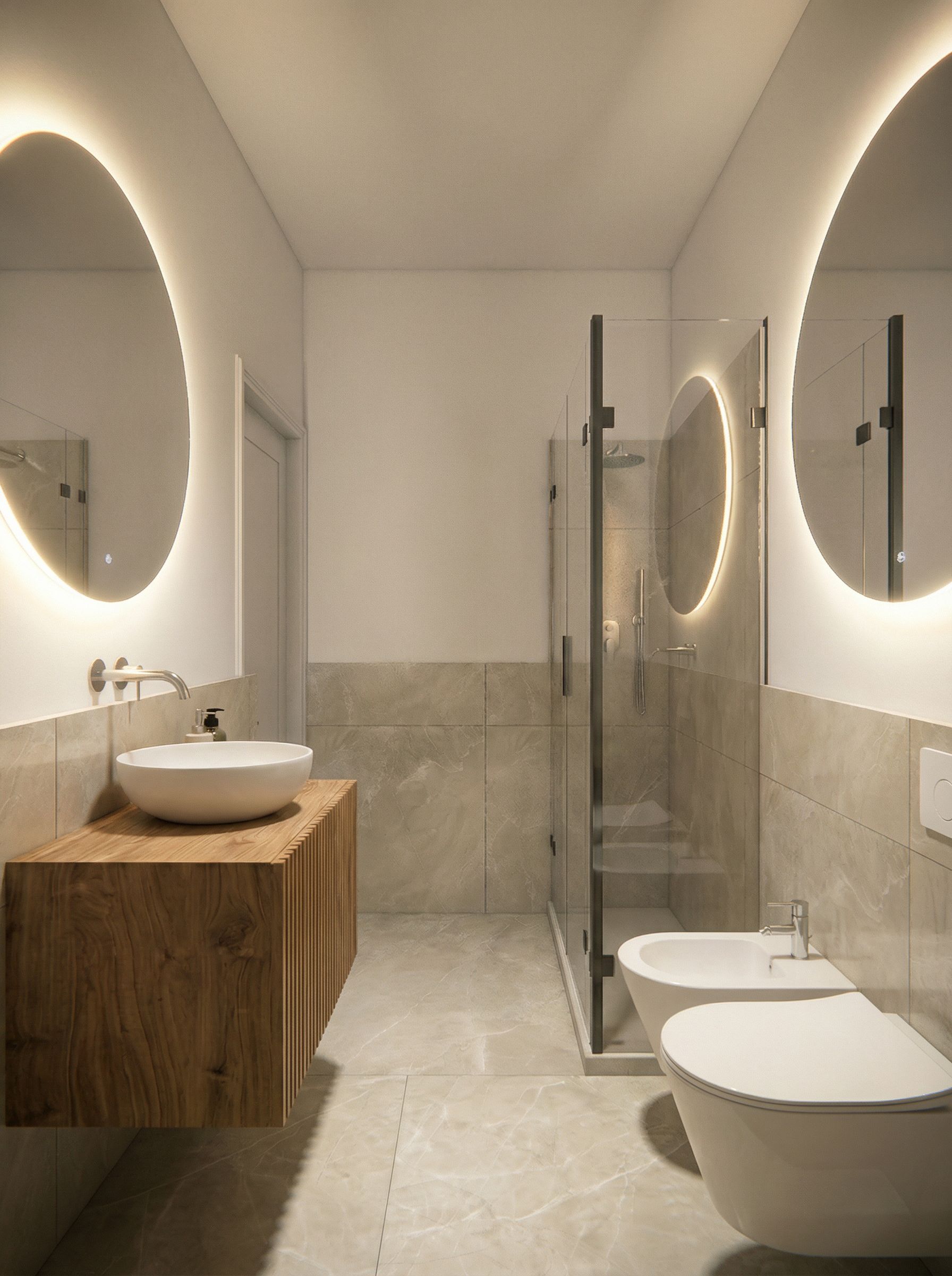 Promptscambia la posizione del lavabo con i sanitari, keep exact camera angle