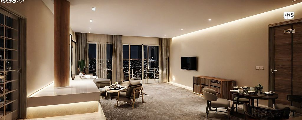 Apartment internal view at night, Carpet Flooring, Modern Touch