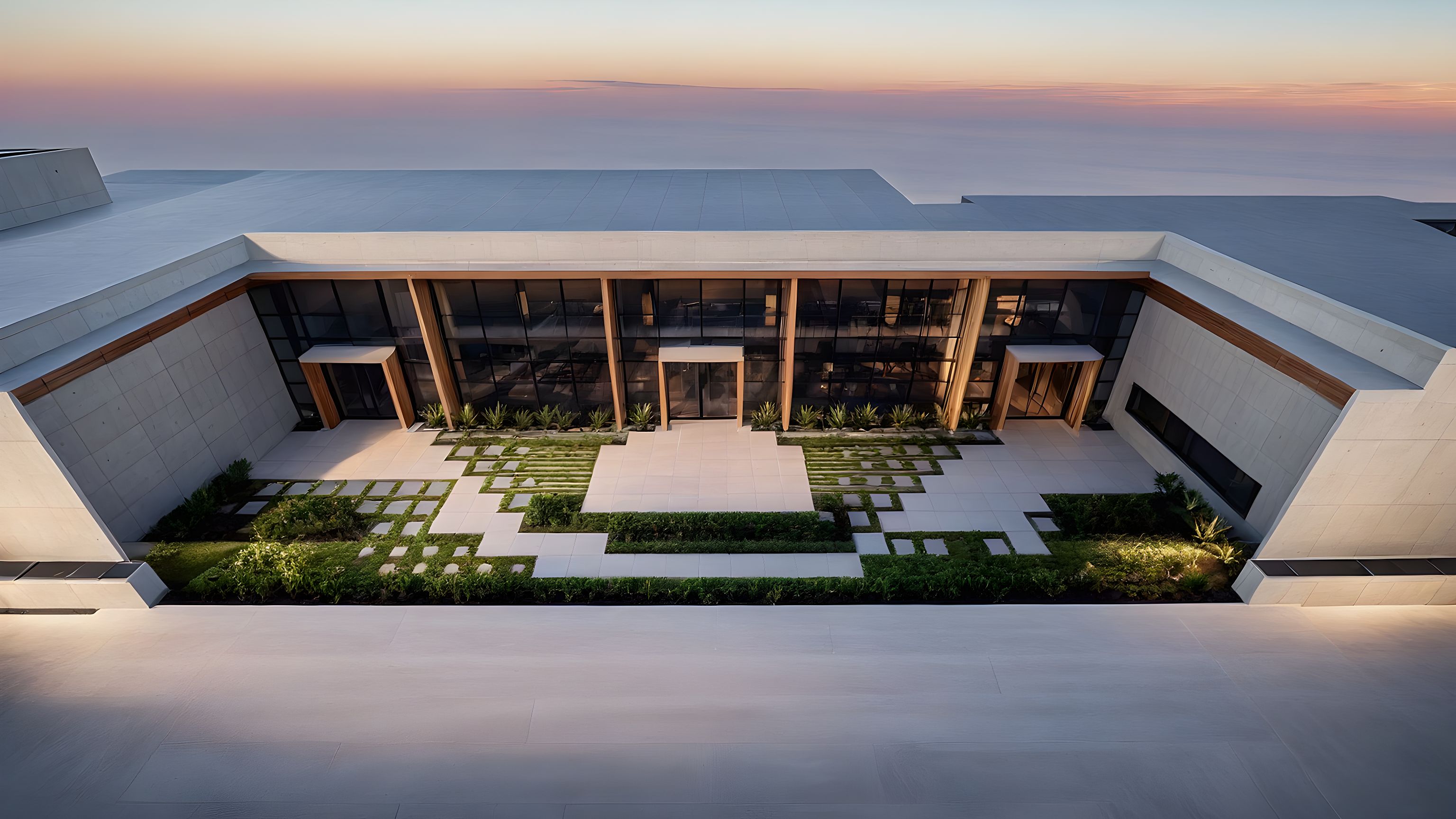 modern. concrete. roof top design. beautiful sky. organic landscaping. ultra realitistic. warm tone. softpave. roof top part only. bacground