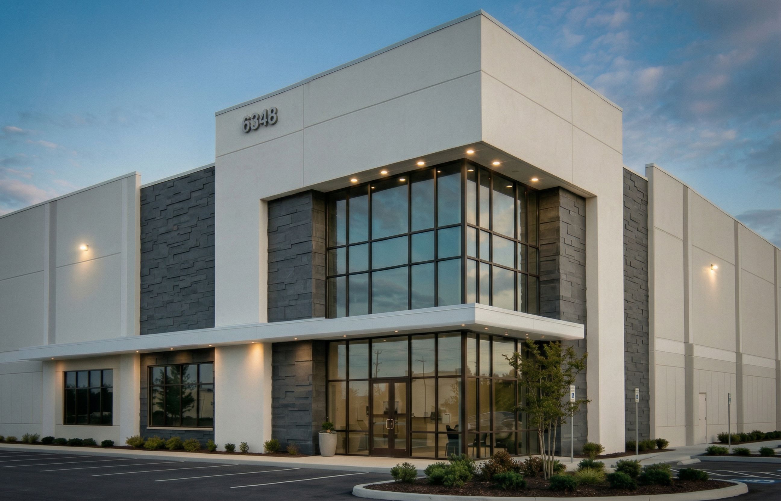 PromptDO NOT CHANGE ANYTHING ABOUT THIS IMAGE ASIDE FROM THE TEXTURE OF THE STONE. DO NOT CHANGE THE GEOMETRY OF THE BUILDING OR ANY OF THE COLORS. CHANGE THE CHARCOAL COLOR STONES TO HAVE A MORE SMOOTH FLAGSTONE FINISH ON THEIR FACE. THE FLAGSTONE CUT PATTERN SHOULD NOT CHANGE, THE TEXTURE SHOULD JUST LOOK MORE SMOOTH, keep exact camera angle