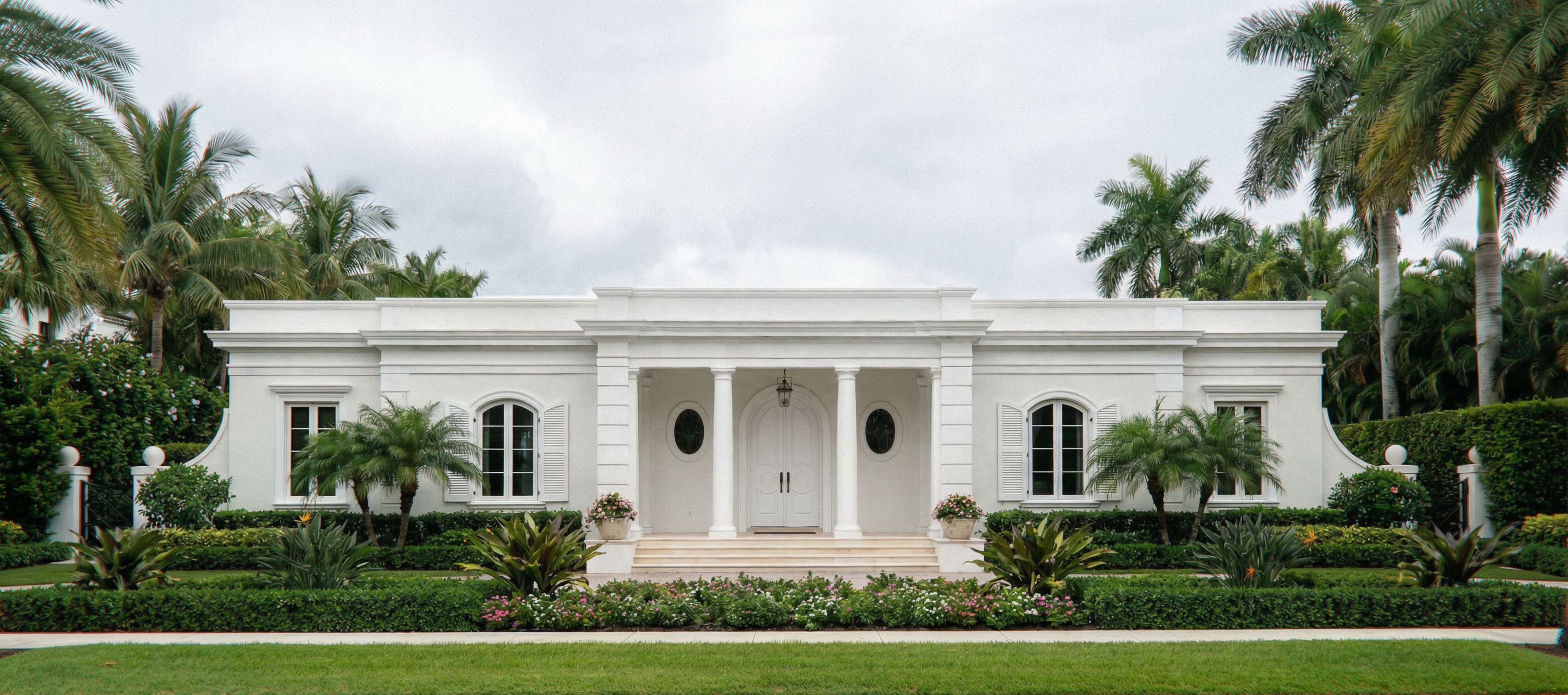 Change only what i tell you. Can you make the cast stone white it should be a very similar color to the main body of the house. Can you make teh front foor white painted wood and the shutter. the windows will be white aluminum , keep exact camera angle