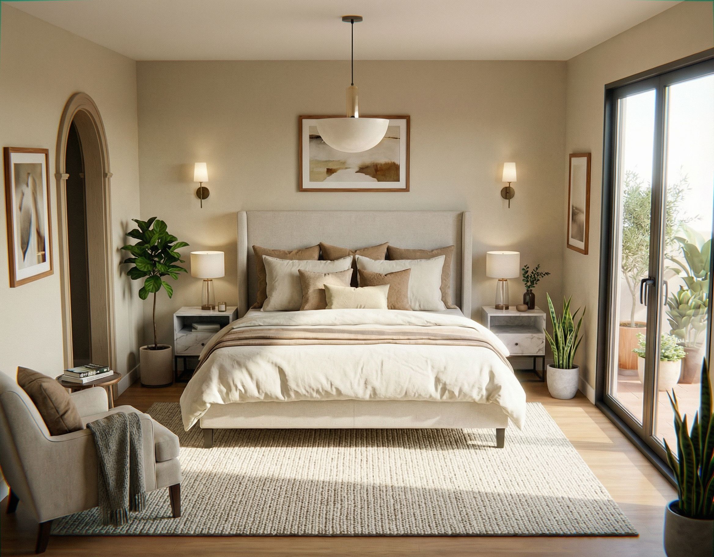 show trim around the arch way, keep exact camera angle
