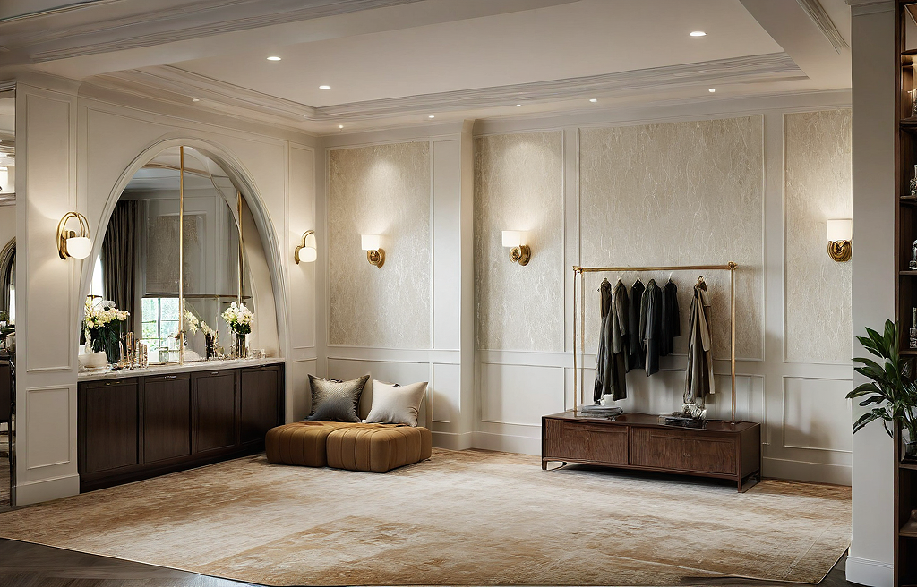 Promptwallpaper with wainscoating, full carpet, modern, warm and luxurious classic american