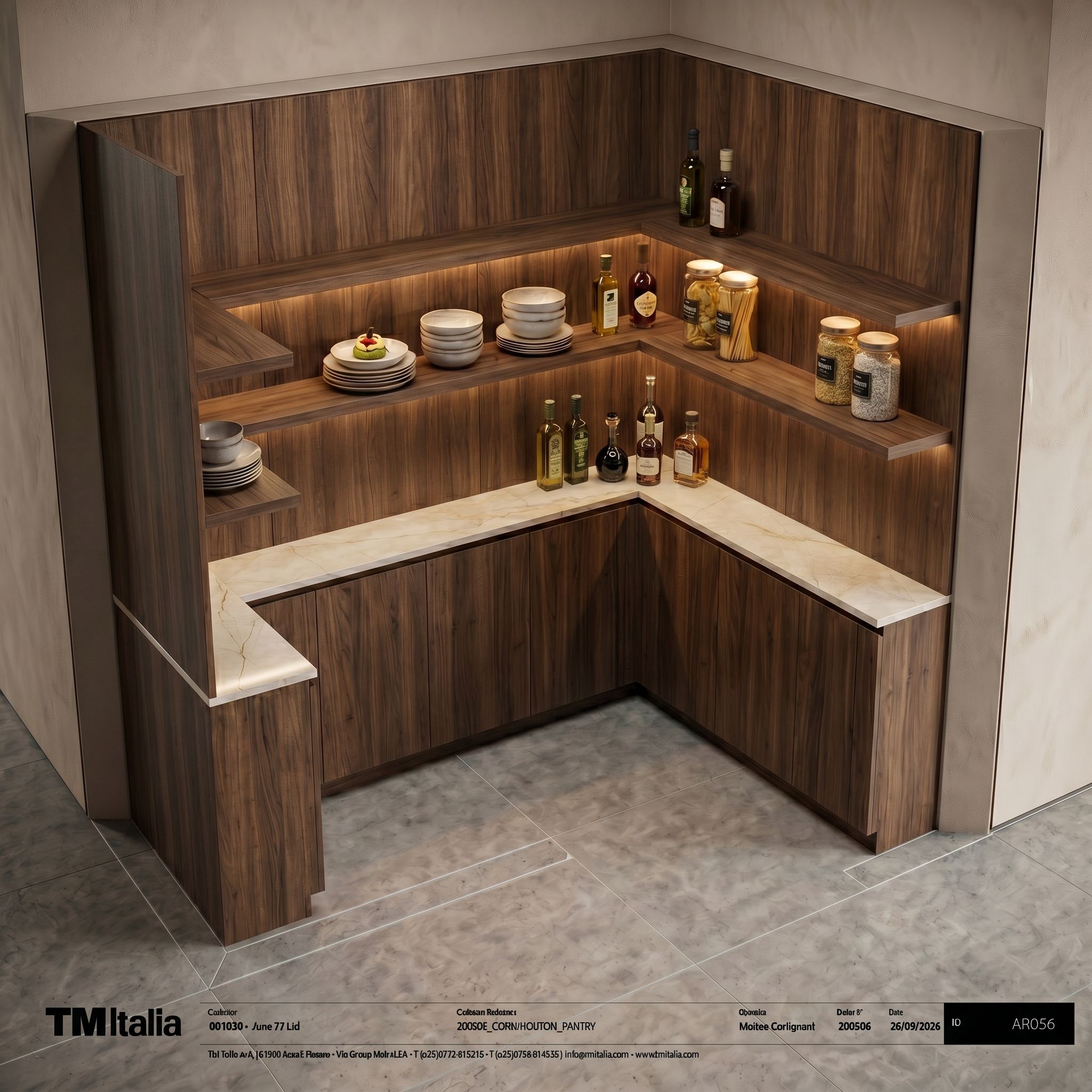 Promptsplashback in wood and add some bottles on the coumter top , keep exact camera angle