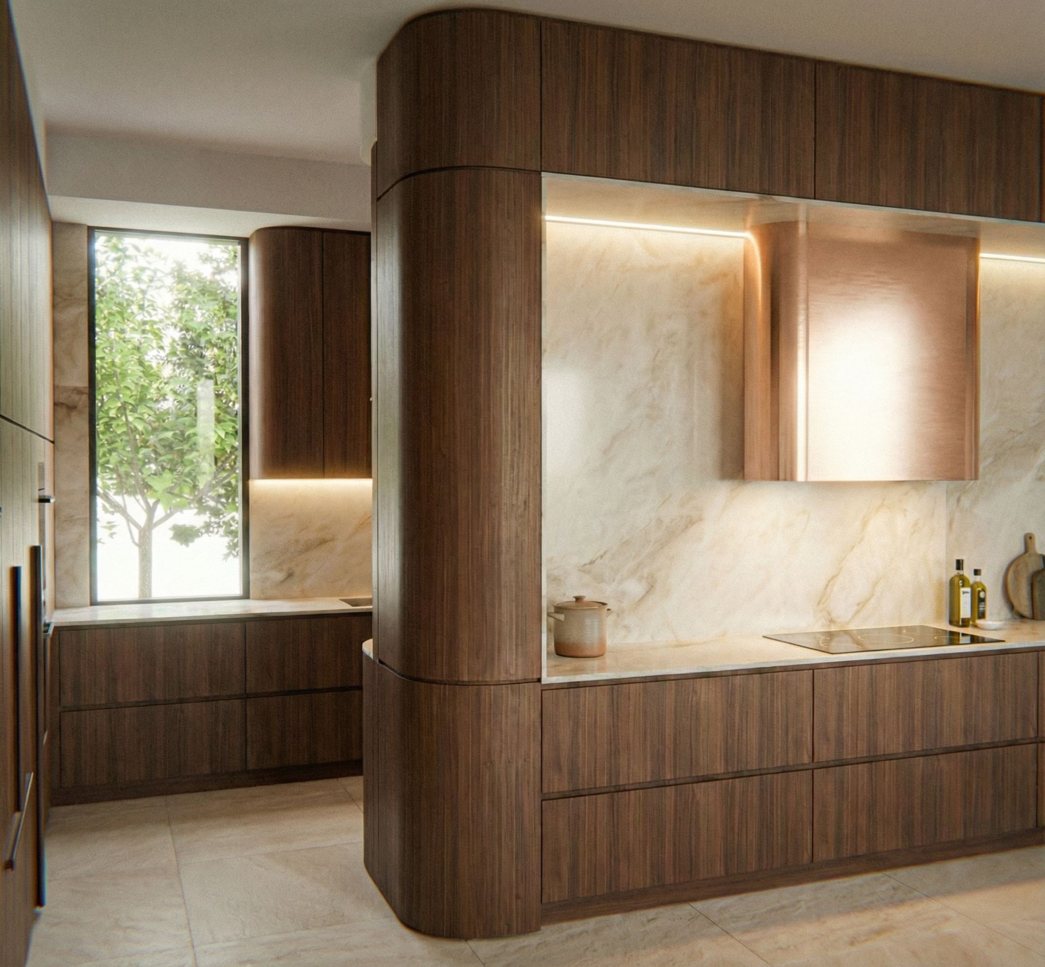 PromptLight floor tiles. Taj mahal stone benchtops, keep exact camera angle