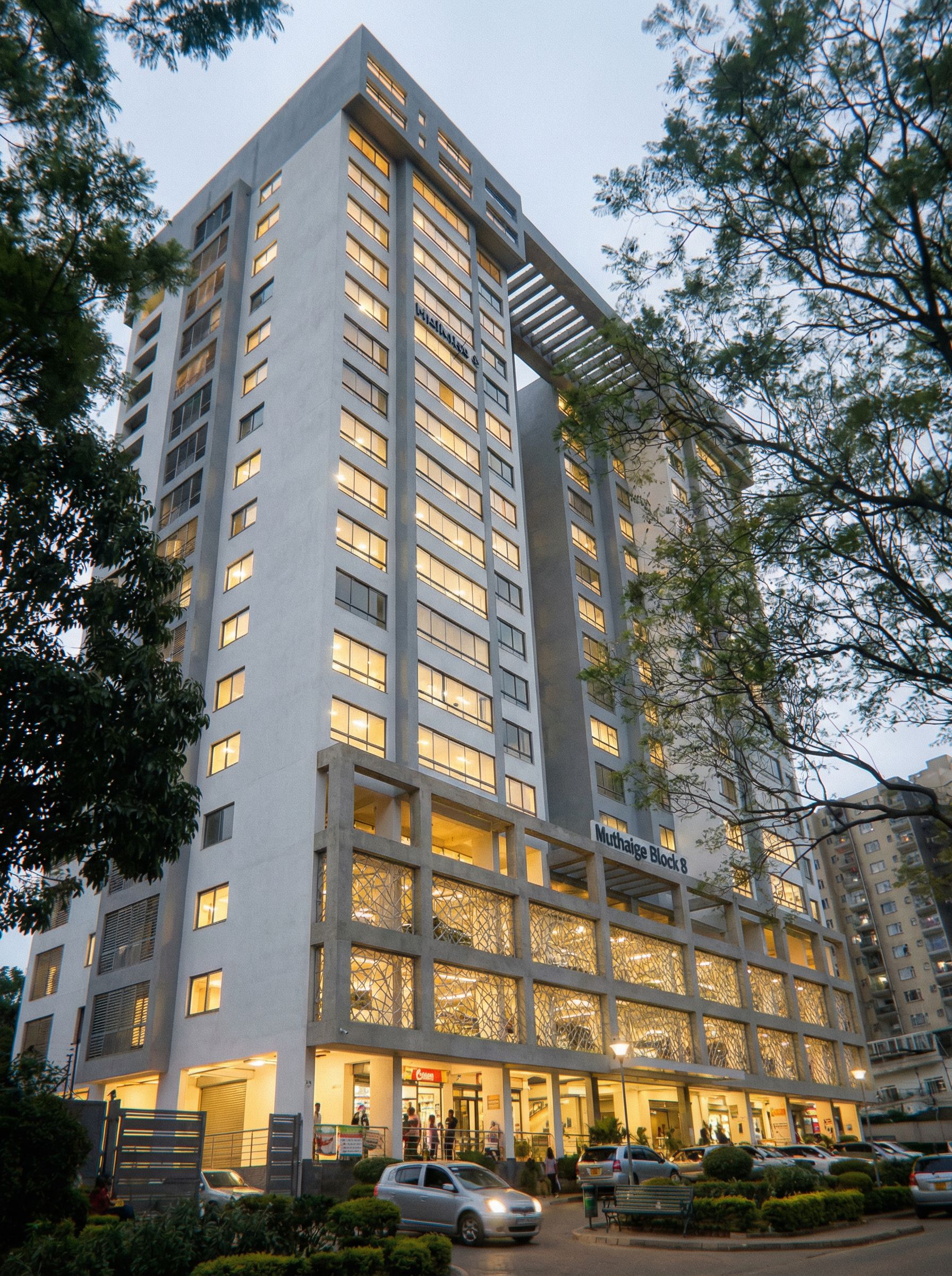 PromptTHE VEHICULAR ENTRANCE SHOULD BE ON THE LEFT HAND CORNER UNDER THE BUILDING. ADD TWO MORE FLOORS ON EITHER SIDES OF THE BUILDING. HIDE THE COLUMNS ON NTHE PARKING LEVELS AND SHOW ONLY THE LATTICE WORK COVERING. MAKE BUILDING REALISTIC AND 8K RESOLUTION. TURN ON THE LIGHTS IN THE BUILDING., keep exact camera angle