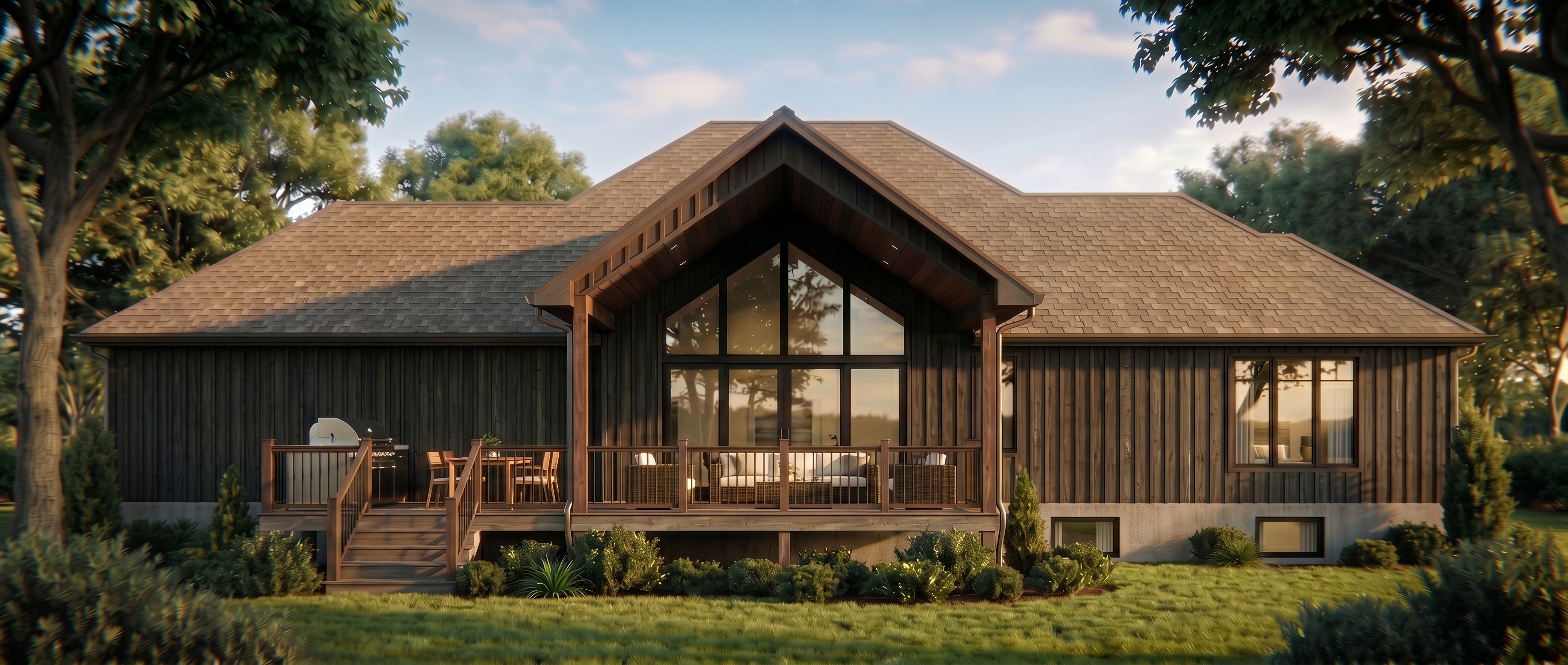 Promptmove the patio furniture to the middle and add a bbq and table on the left deck area, keep exact camera angle