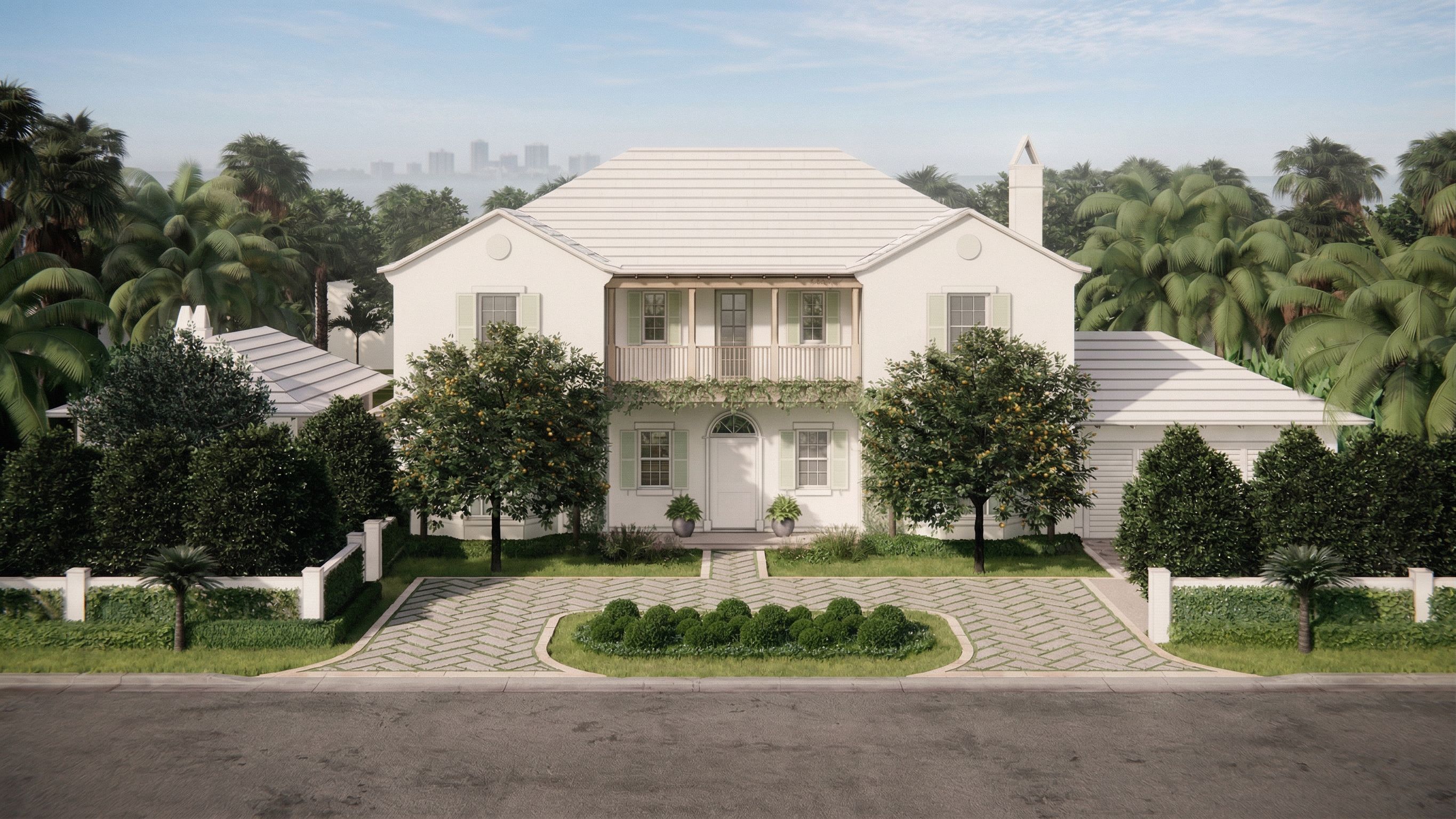 Prompt Perform a final refinement pass on the provided rendering. PRIMARY RULE: Keep the house, landscaping, hardscape, trees, and all mid-ground elements EXACTLY as they are. Do not alter: - Architecture - Materials - Hardscape patterns - Landscape design - Tree placement - Mid-ground buildings Only refine the horizon and sky. HORIZON: - Enhance atmospheric depth at the horizon line - Introduce a soft coastal haze - Slightly soften and blend the distant skyline - Maintain visibility of distant Riviera Beach buildings, but keep them: • faint • low contrast • slightly desaturated • soft-edged - Subtle suggestion of water (Intracoastal) is allowed, but keep it minimal and blended SKY: - Replace or refine sky with a more natural, photorealistic sky - Light blue gradient with gentle variation - Soft, scattered clouds (not dramatic or heavy) - Avoid HDRI or overly sharp cloud edges - Slight brightness near horizon for realism LIGHTING: - Maintain soft, diffused daylight - Ensure sky lighting matches the existing scene - No change to shadows on the house or foreground ATMOSPHERE: - Add very subtle aerial perspective - Background should feel more distant than mid-ground - Smooth gradient transition from trees → haze → sky IMPORTANT: - No new objects in foreground or mid-ground - No changes to composition - No increase in contrast in background STYLE: - Ultra-photorealistic - Subtle, atmospheric, refined , keep exact camera angle