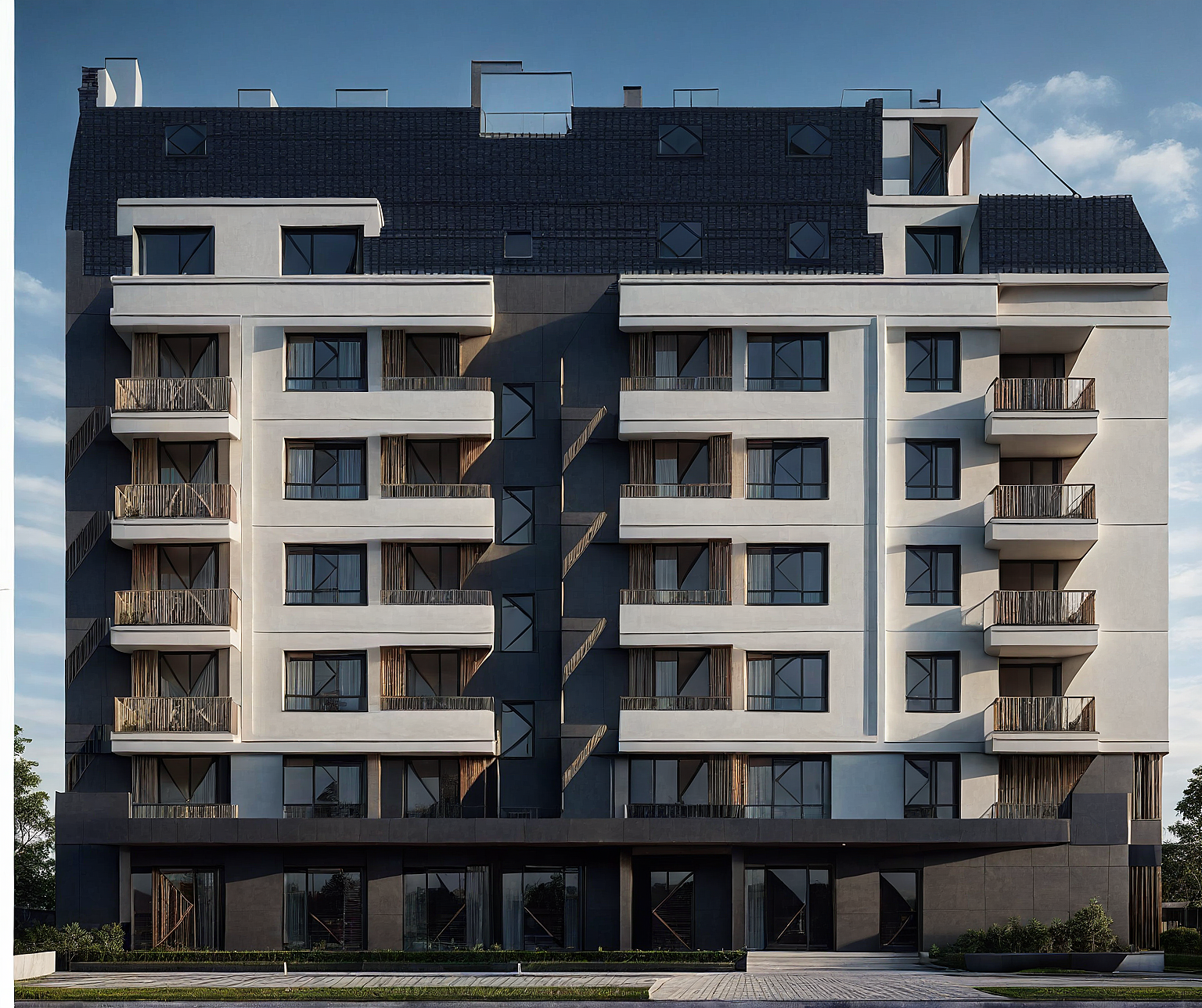 daylight, dark horizontal dark accent, residential building