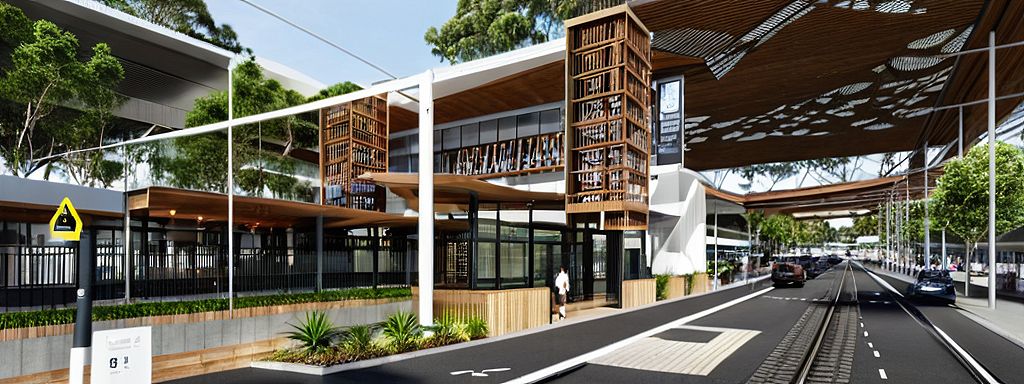 Promptthe new development is an expansion on what is already a pedestrian passover between the two Boondall train station platforms. included in the current passover is stairways and an elevator on each platform. my design idea is to build off this, and have an above-ground and over the train line, transverse design corridor, highlighting the connection between the two sides outside of the train station split by the dividing train line. in the building, lining the corridor (take inspiration from brisbane central train station, and brisbane's fortitude valley station, and have a cafe, restaurant, bathroom, grocer, atms, and seating available and lining the corridor.
