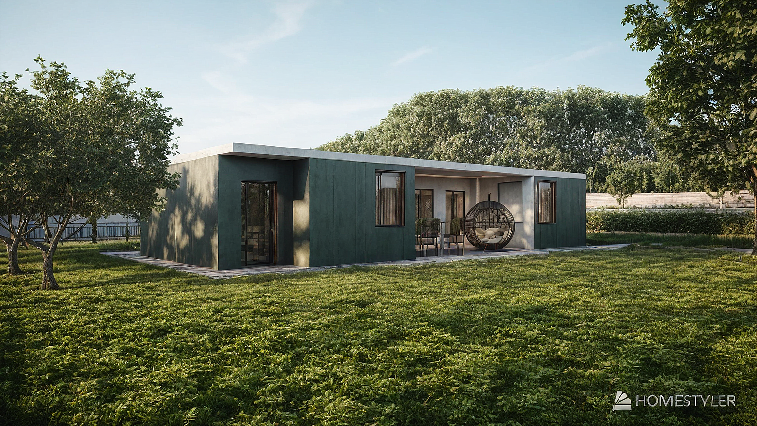 grean house with garden