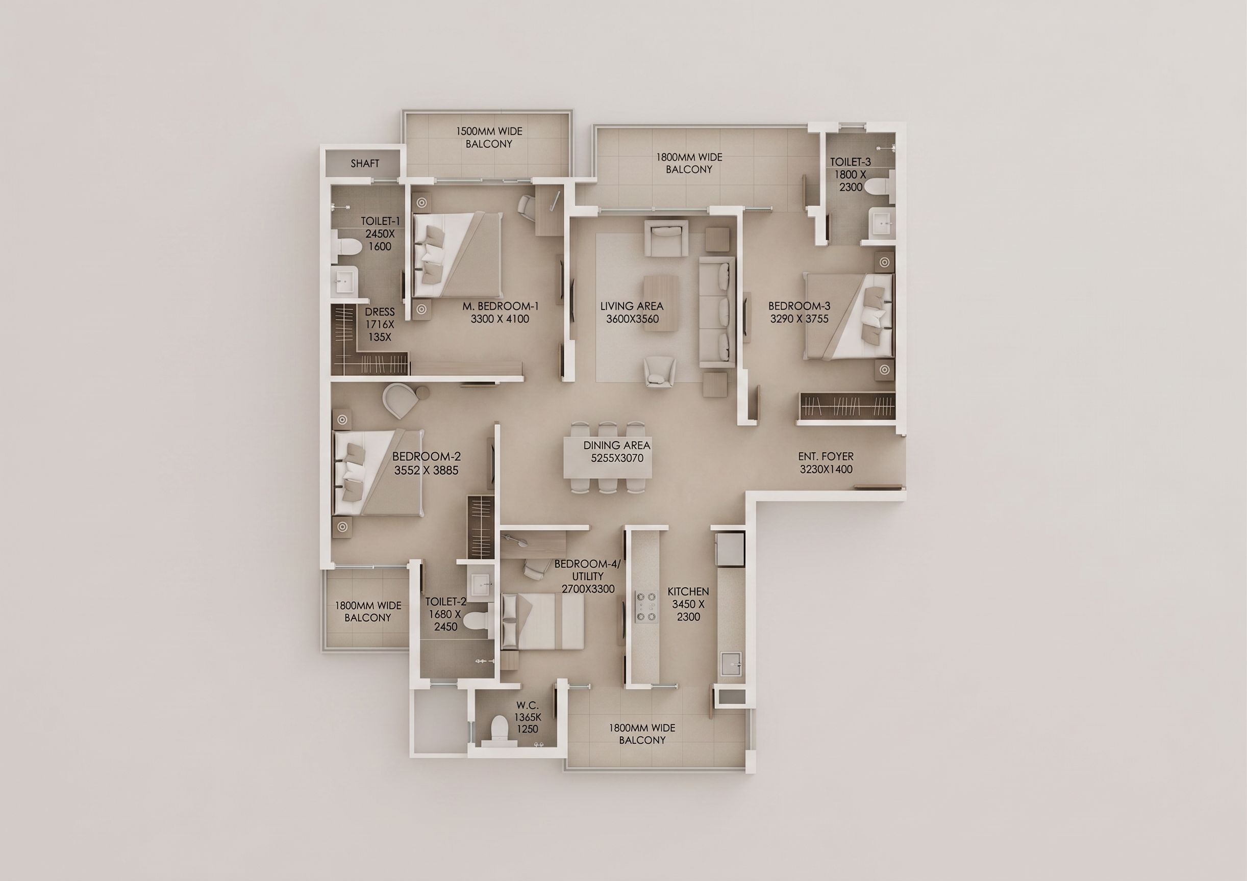 Convert the uploaded 2D floor plan into a clean top-down 3D floor plan render. Strictly preserve the exact layout, wall positions, room sizes, door and window locations. Do not change or reinterpret the plan. Use simple neutral materials: light beige matte flooring, off-white walls, minimal furniture. Lighting should be flat and even, with minimal shadows. Focus on accurate geometry and proportions, not styling. Top-down orthographic view, no perspective distortion. Creativity: LOW Detail: MEDIUM Lighting: Neutral / Flat, keep exact camera angle