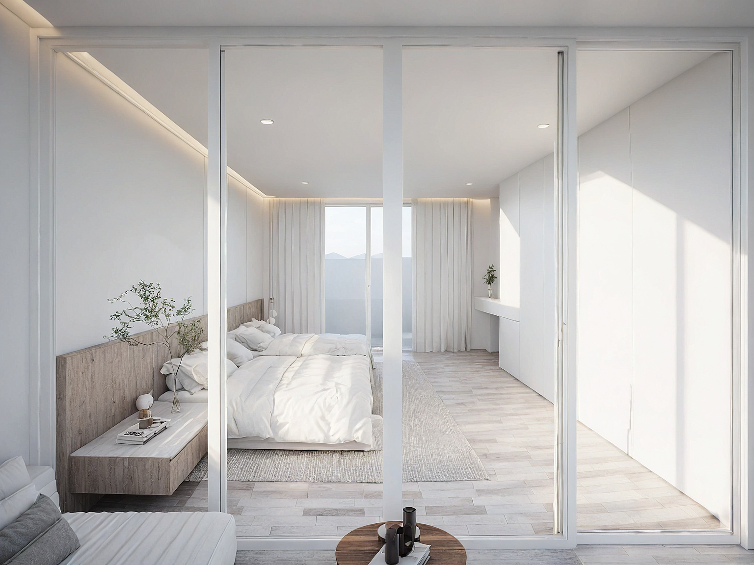bed room, minimalist, white