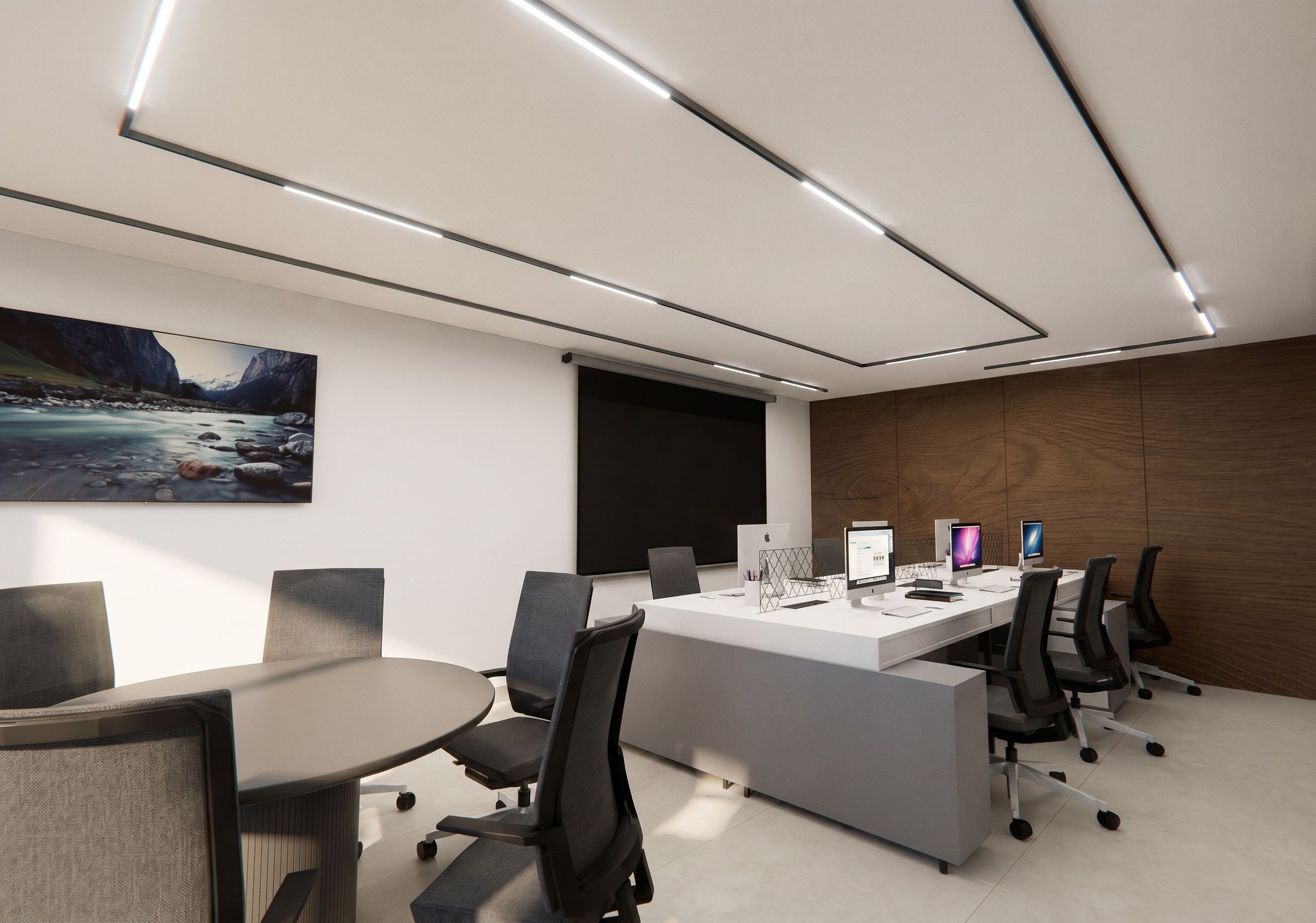 AÑADE QUE LAS COMPUTADORAS ESTAN ENCENDIDAS, CAMBIA LAS SILLAS COLOR GRIS , NO PUEDES MODIFICAR MAS NADA NI EL COLOR DEL PISO , keep exact camera angle
