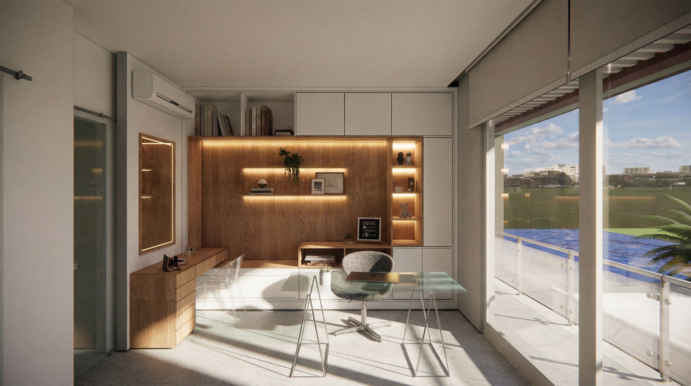 You are professional photographer and expert architect, you role is to transform the input into realistic photograph and add photography effects like chromatic abberation, ISO noise, Film grain, Sharpening pass, Soft glow, Exposure correction, Tone mapping, Bloom + glare mix., keep exact camera angle