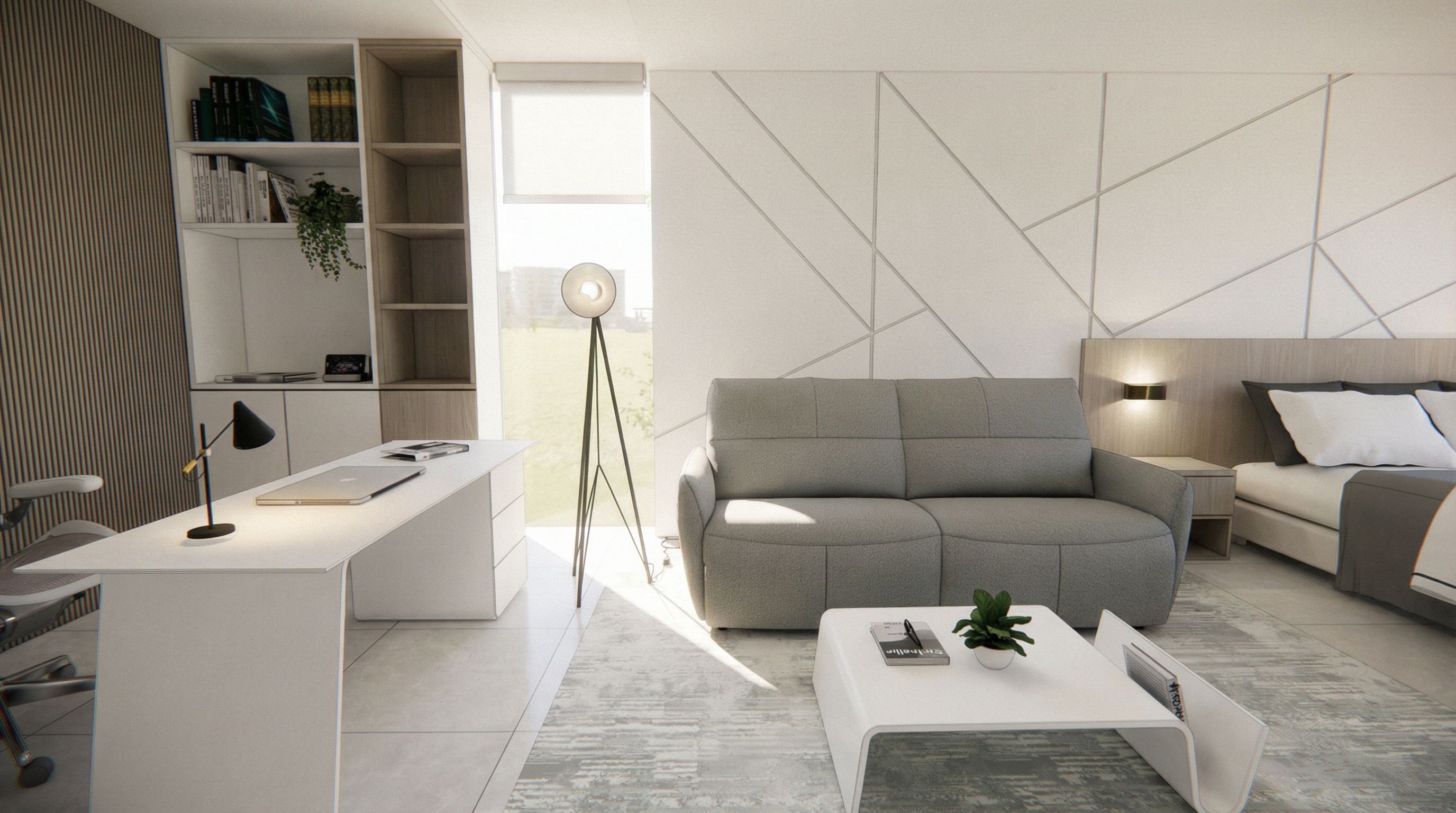 PromptCREATE A LIGHT ATMOSPHERE&. You are professional photographer and expert architect, you role is to transform the input into realistic photograph and add photography effects like chromatic abberation, ISO noise, Film grain, Sharpening pass, Soft glow, Exposure correction, Tone mapping, Bloom + glare mix, keep exact camera angle, keep exact camera angle, keep exact camera angle