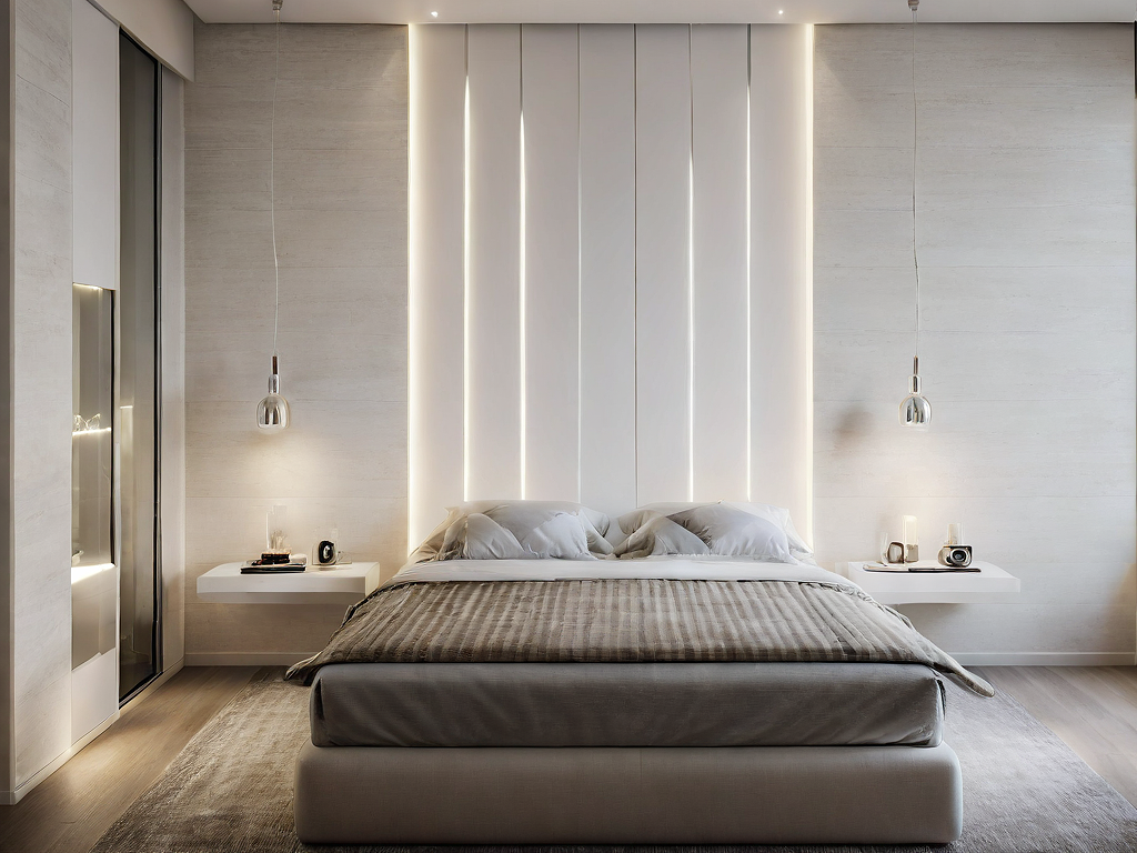 Promptminimalistic bedroom, light up the space give me bedside tables on the both sides and window on the right