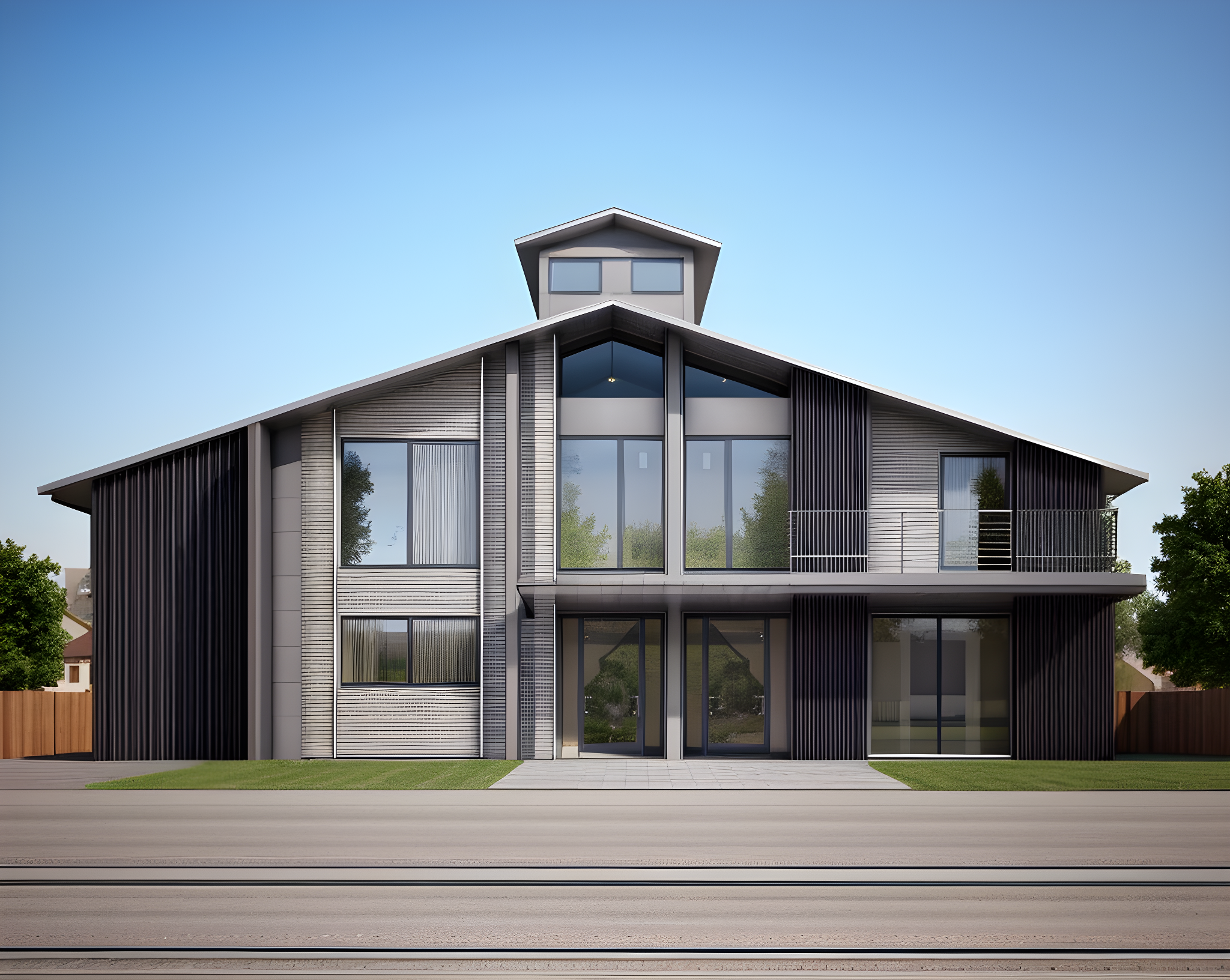 industrial design steel house. facade concept will be metalic and glass