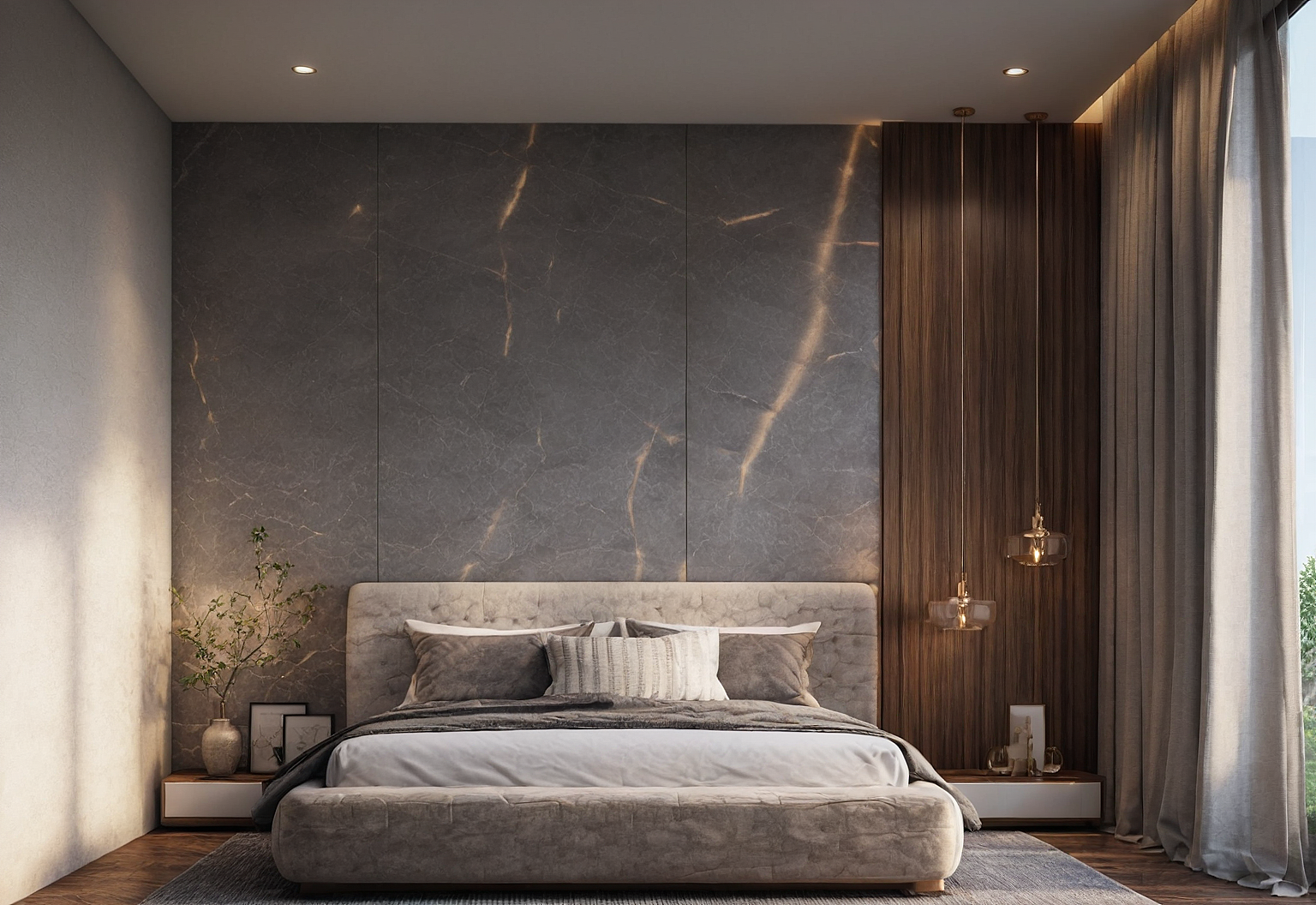 PromptBed room Modern Luxury,on edit detail,Do not add wood material.Mable material.
