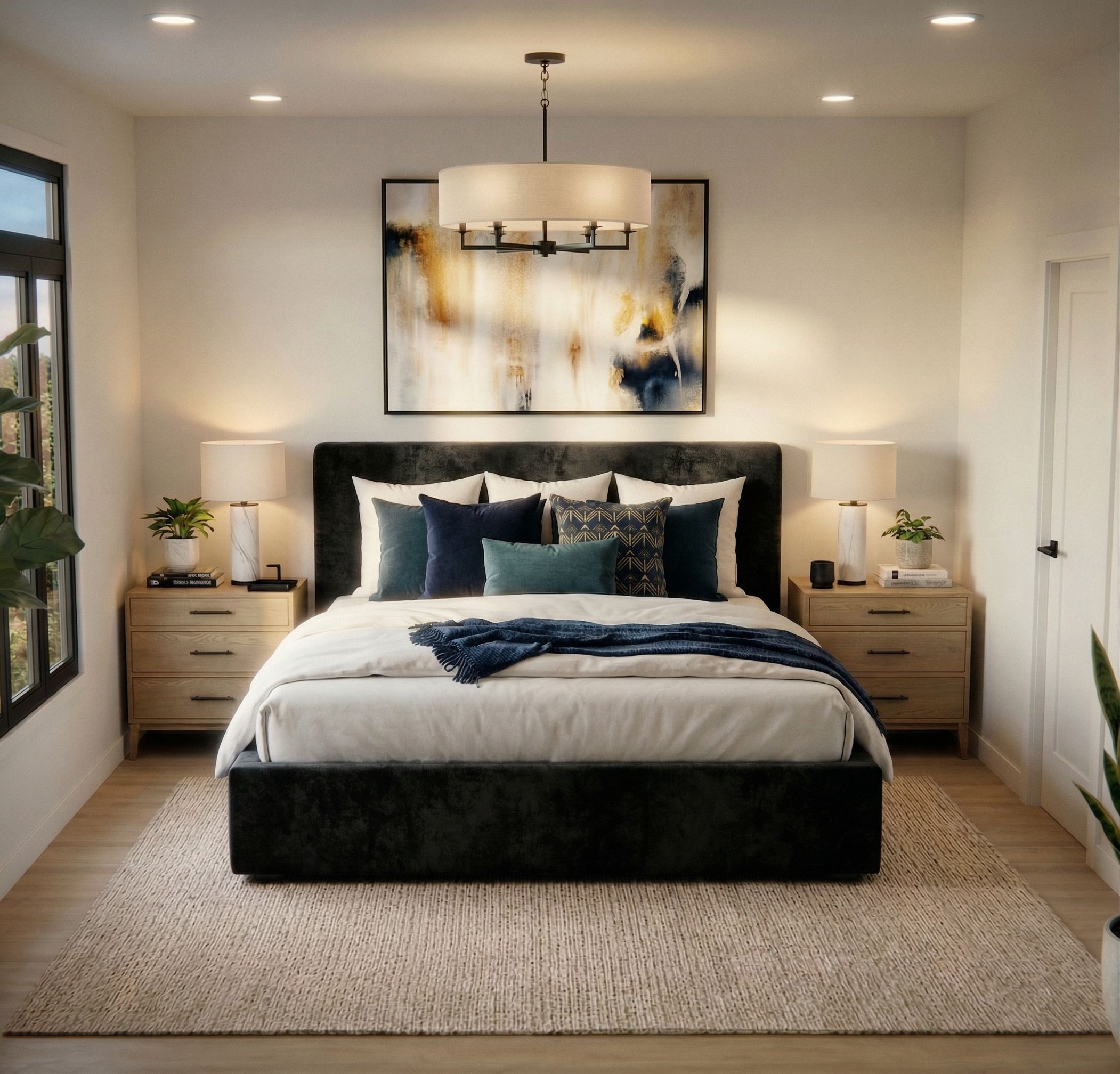 change bed frame to black, keep exact camera angle