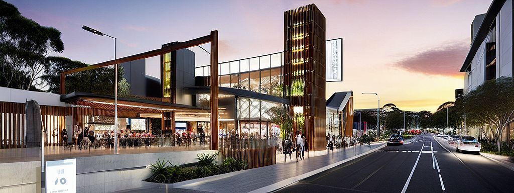 Urban Planning Integration at Boondall Train Station, Brisbane, Australia Overview: Design a series of architectural visualizations for a new above-ground, transverse pedestrian corridor connecting the high-density residential area to the Boondall Entertainment Centre carpark, traversing over the existing train line. This development builds upon the current pedestrian overpass, enhancing connectivity and fostering economic integration between the two zones. Key Features: Structure: Elevated corridor spanning over the train tracks at second story height, seamlessly connecting both sides of the station. Transparent or semi-transparent materials for the corridor to ensure visibility and safety. Incorporation of natural elements, such as greenery or green walls, to blend with the surrounding environment. Amenities: Retail Spaces: A café with outdoor seating, offering views of the station and surrounding areas. A small grocery store or convenience shop catering to commuters and residents. ATM kiosks strategically placed for easy access. include digital advertisement of brisbane entertainment centre upcoming events. Public Facilities: Restrooms with modern fixtures and accessibility features. Comfortable seating areas with charging stations and Wi-Fi access. Design Elements: Use of materials inspired by Brisbane Central and Fortitude Valley train stations, such as steel, glass, and timber accents. Integration of lighting design to ensure safety and ambiance during nighttime use. Do not open up building on the right residential side. Visual Perspectives: Aerial View: Showcase the elevated corridor spanning over the train tracks, highlighting its integration with the surrounding urban fabric. Site Plan: A detailed layout illustrating the placement of amenities, seating areas, and access points. Interior Renderings: Visualize the corridor's interior, focusing on the retail spaces, seating arrangements, and design aesthetics. Cross-Sectional View: Provide a cross-sectional illustration showing the relationship between the elevated corridor and the train tracks below. Design Inspiration: Brisbane Central Train Station: Incorporate elements such as arched ceilings and heritage features. Fortitude Valley Train Station: Utilize modern materials and design principles for a contemporary feel. Consider environmental sustainability in material choices and energy-efficient lighting solutions. should still be able to see the train tracks and trains using the station - main purpose is to still function as a train station.