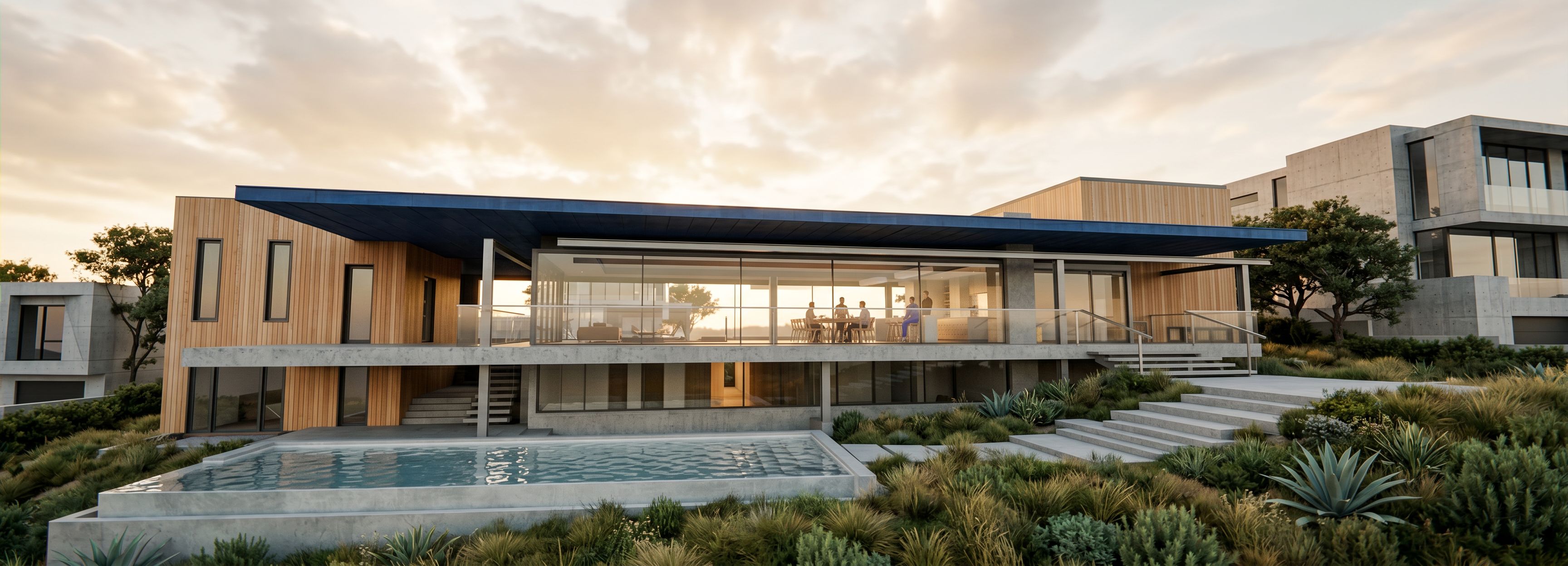 PromptCONCRETE BUILDINGS ON EACH SIDE