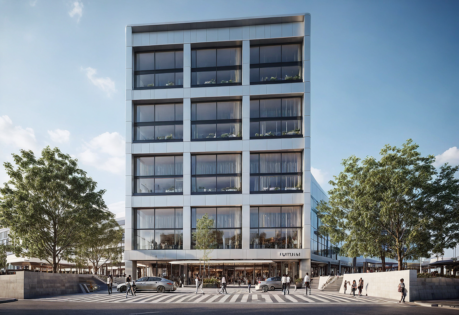 Imagine a modern commercial shopping mall.